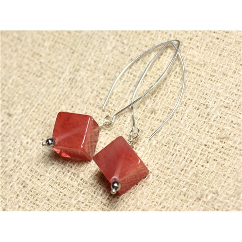 925 Silber- und Steinohrringe - Kirschquarzwürfel 15mm