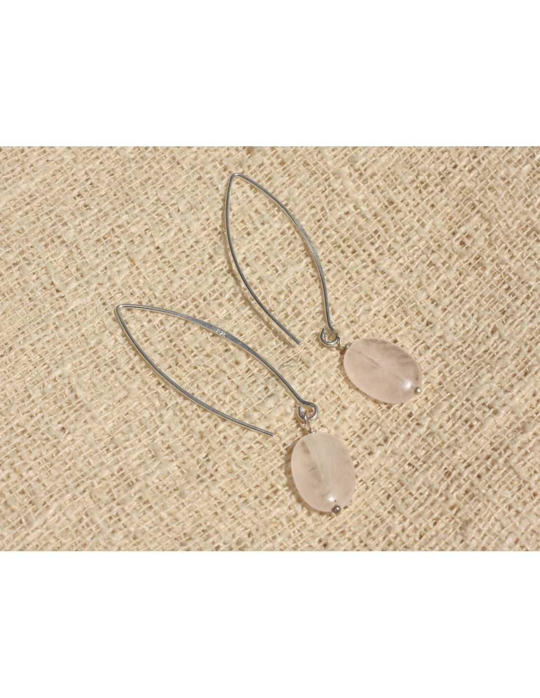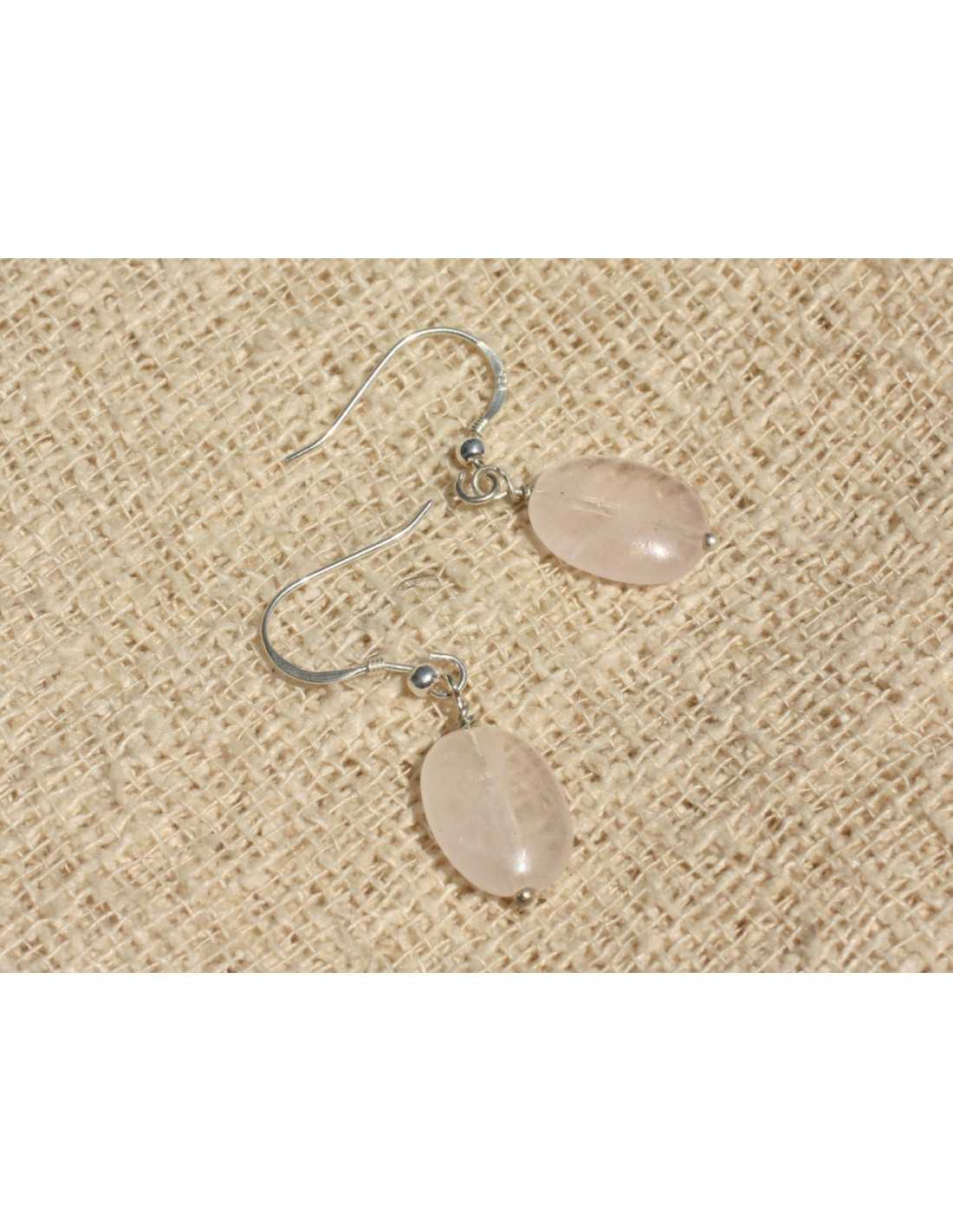 925 Silber- und Steinohrringe - Rosenquarz oval 14x10mm