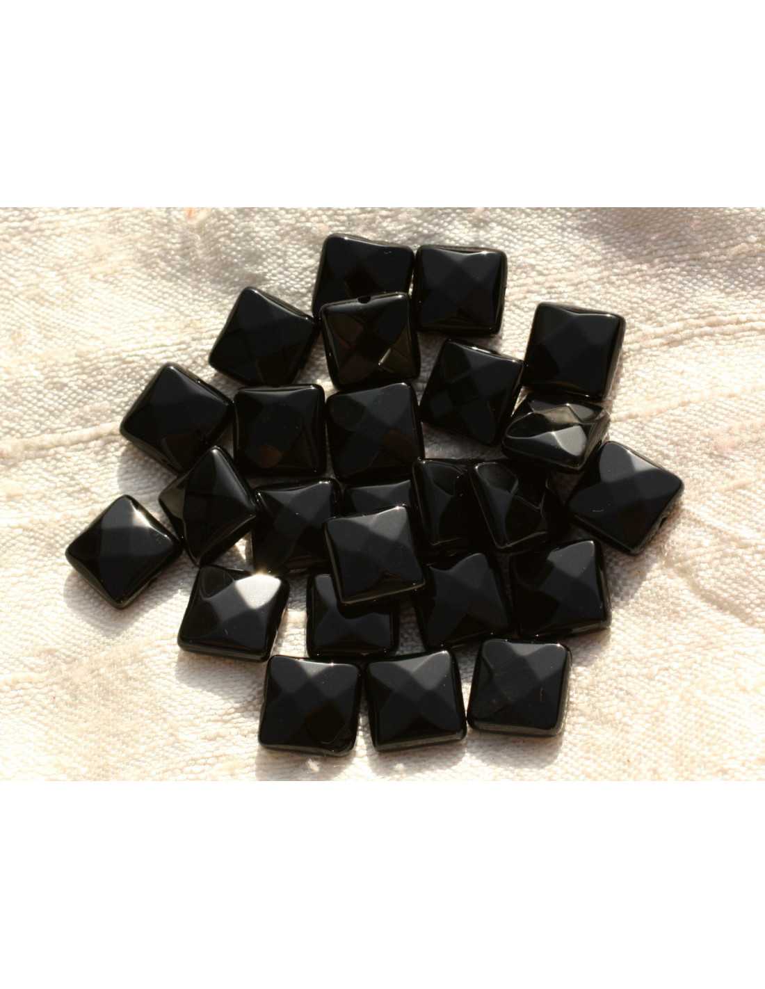Gewinde 39 cm - Schwarze Onyxsteinperlen Facettierte Quadrate Natürlicher Halbedelstein Farbe Schwarze Form Facettierte Quadrate in Längsrichtung gebohrt Abmessungen Länge Breite 10 mm x Dicke 4 mm ungefähr Bohrmaß 1 mm ungefähr Verkauft mit einem Faden von 39 cm Ungefähr 37 Perlen pro Strang