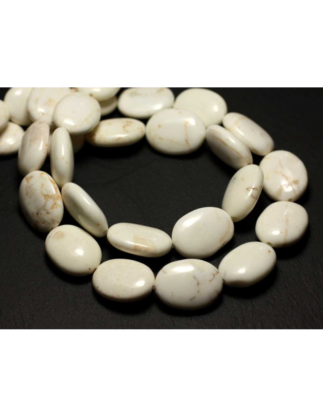 Gewinde 39 cm - Synthetische türkisfarbene Steinperlen Türkisfarbene ovale Synthese Rekonstituierte Farbe Cremeweiß, Beige Ovale Form in Längsrichtung gebohrt Abmessungen Länge 20 mm x Breite 15 mm x Dicke 8 mm ca. Bohrabmessung ca. 1 mm Ca.