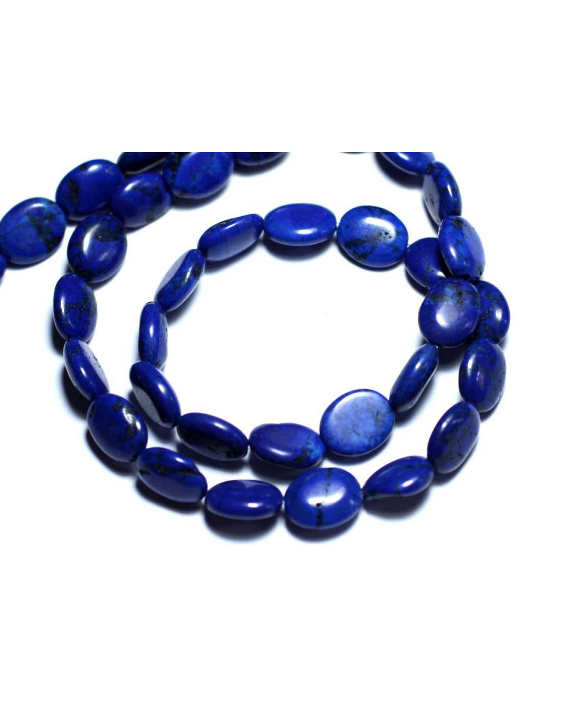 Gewinde 39 cm - Synthetische türkisfarbene Steinperlen Rekonstituiertes Oval 9 x 7 mm Synthetische Steinfarbe Mitternachtsblau Form Oval in der Länge gebohrt Abmessungen Länge 9 mm x Breite 7 mm x Dicke 4 mm ungefähr Bohrmaß 1 mm ungefähr Verkauft mit einem Strang von 39 cm Ungefähr 41 Perlen pro Strang