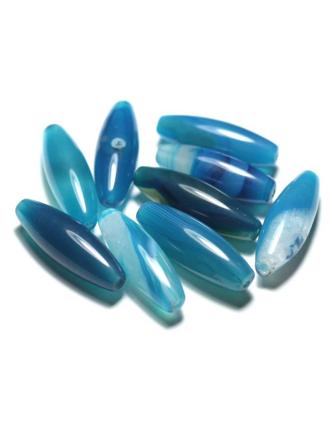 homemade1 Stück - Steinperle - Blauer Achat Olivenreis Spindel 30x10mm