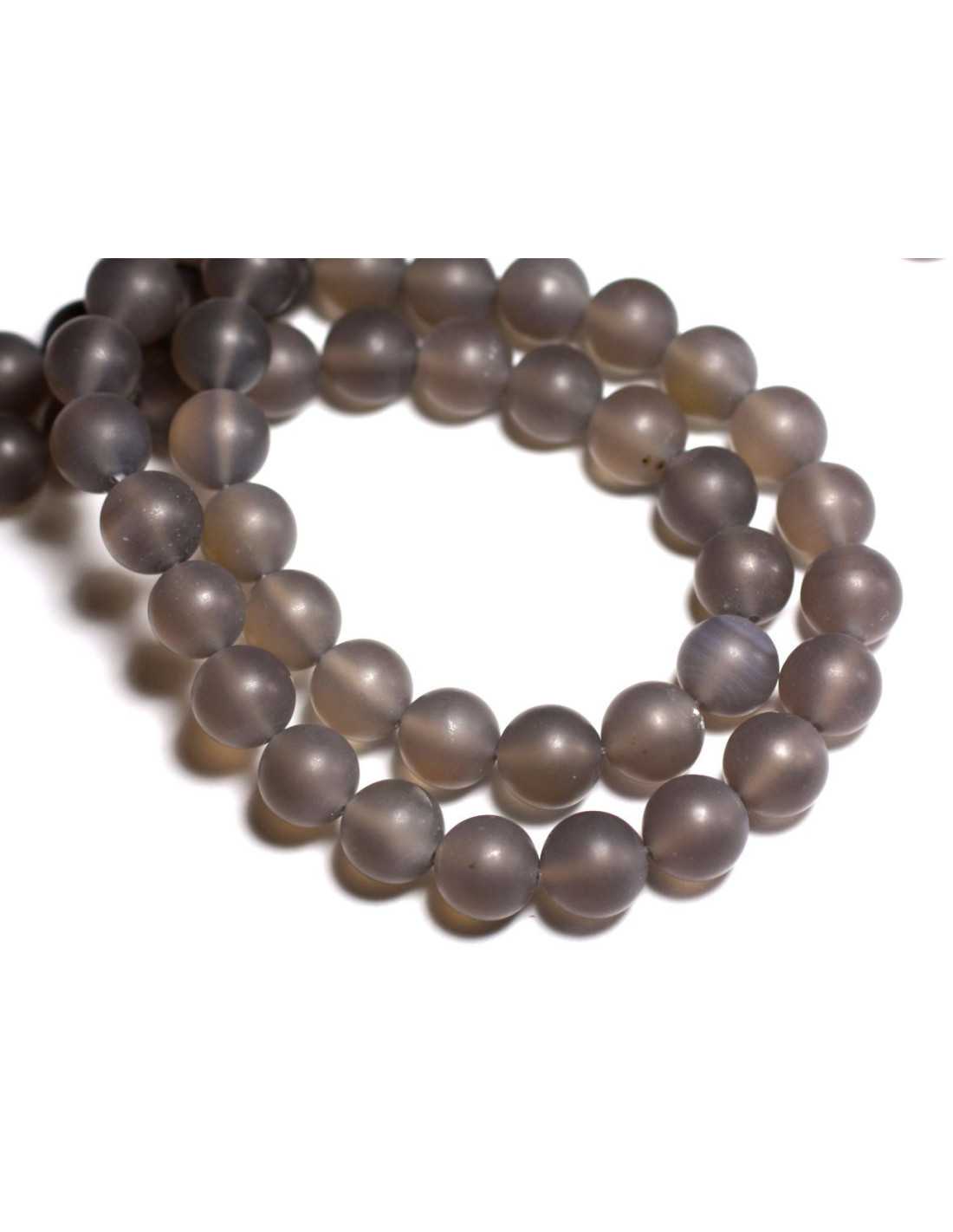 Gewinde 39 cm - Steinperlen Grauer Achat Natürlich getönter Halbedelstein Graue Farbe, transparent Matt sandgestrahlt, matt Formkugeln, rund Abmessungen ca. 12 mm Bohrgröße ca. 1 mm Verkauft mit einem Gewinde von 39 cm Ca. 32 Perlen pro Faden