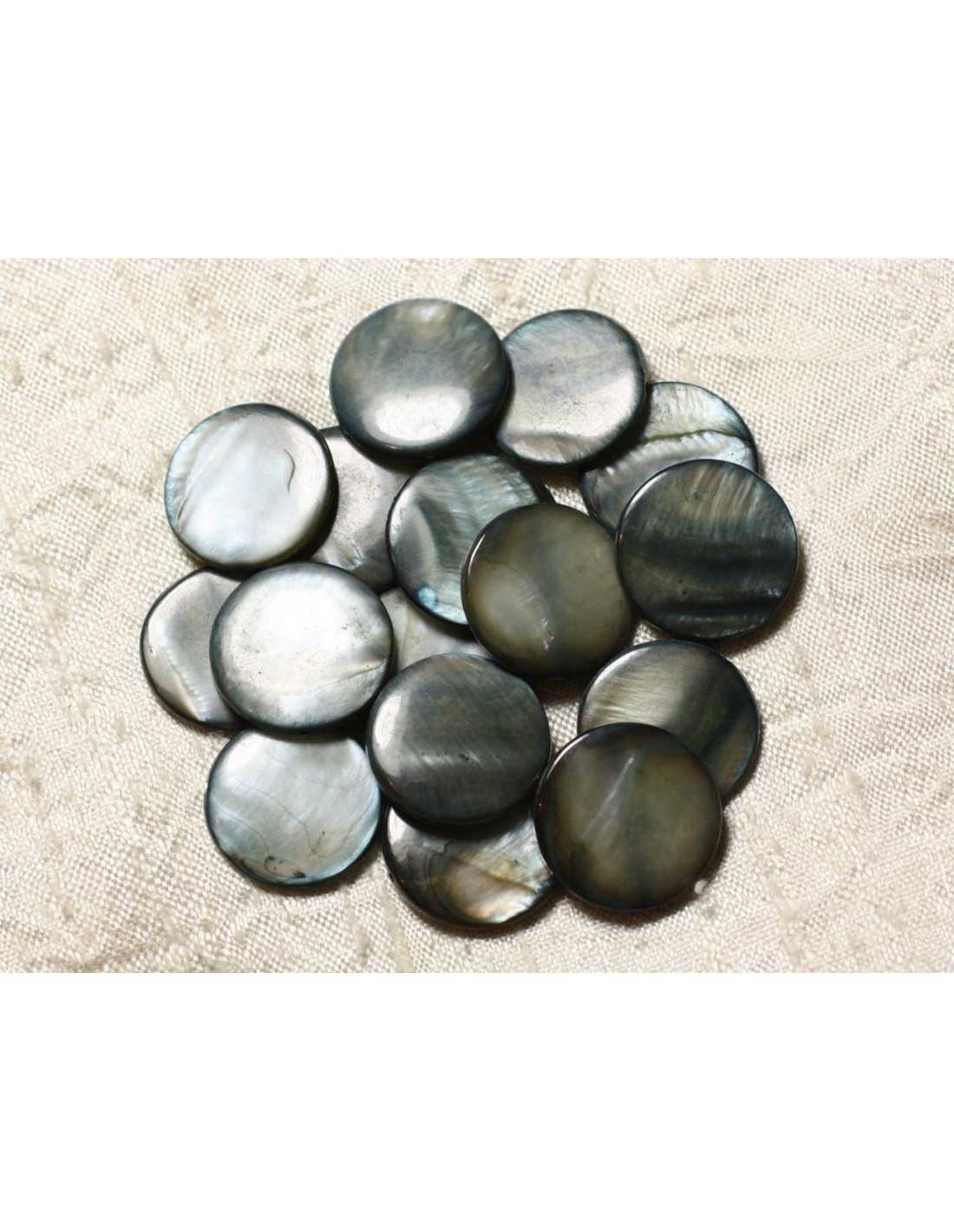10pc - Perlmutt Perlen Paletten 20mm Grau Schwarz