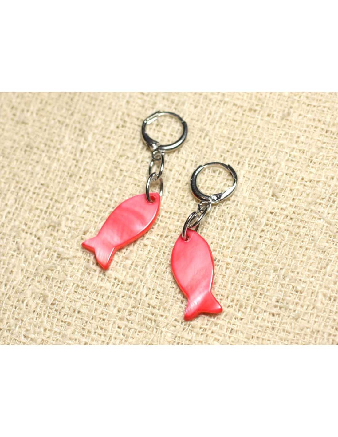 Perlmutt-Fischohrringe 23 mm Rot Rosa Fischanhänger in getönter natürlicher Perlmuttfarbe Rosa Rot mit schillernden Reflexen Schlafhaken aus versilbertem Rhodiummetall oder optional auch mit 925/1000 Silberhaken. Weitere Farben sind im Shop erhältlich