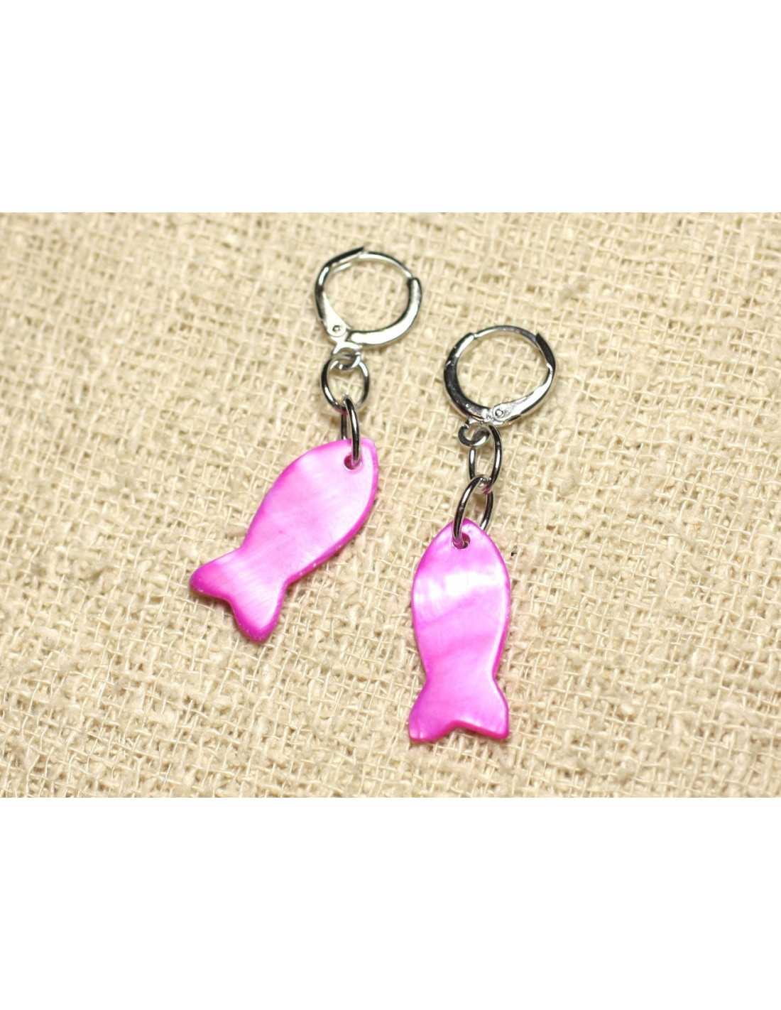 Perlmutt-Fischohrringe 23 mm Lila Rosa Fischanhänger in natürlicher perlmuttfarbener Farbe Lila, Pink Fuchsia mit schillernden Reflexen Creolenhaken aus versilbertem Rhodiummetall oder optional auch mit Silberhaken 925/1000 Andere Farben sind im Geschäft erhältlich