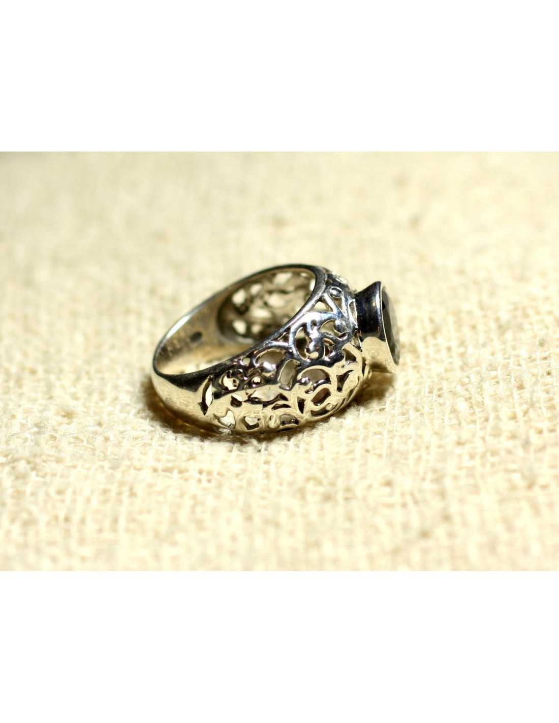 N112 - 925 Silberring mit arabesken filigranem Stein - 8 mm facettierter runder Granat