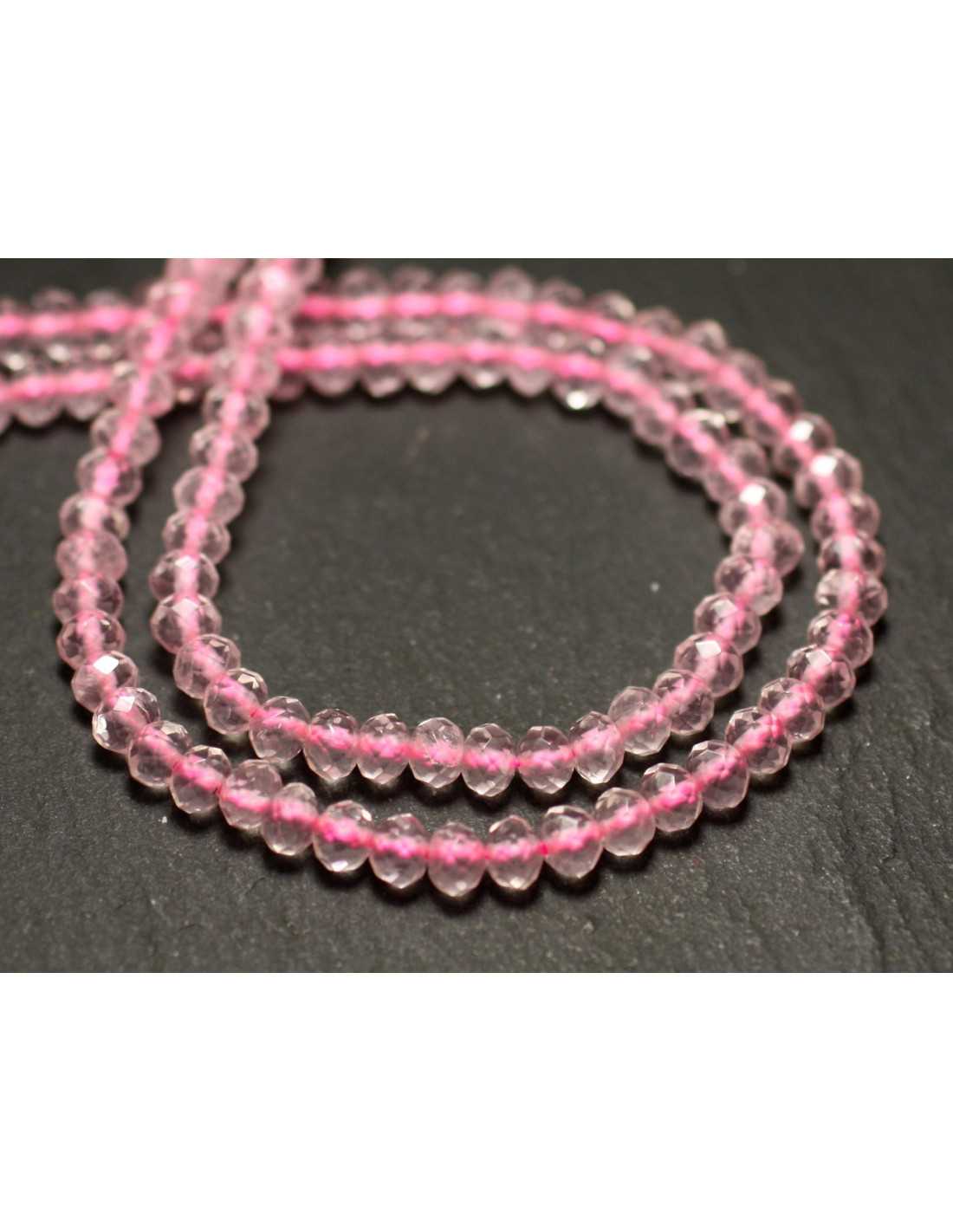 Gewinde 39 cm - Rosenquarz Steinperlen Natürlicher Halbedelstein Hellrosa Farbe, transparente Form Facettierte Unterlegscheiben Abmessungen Durchmesser 4 mm x Dicke 3 mm ca. Bohrmaß ca. 0,8 mm Verkauft mit einem Gewinde von 39 cm Ungefähr 128 Perlen pro Faden