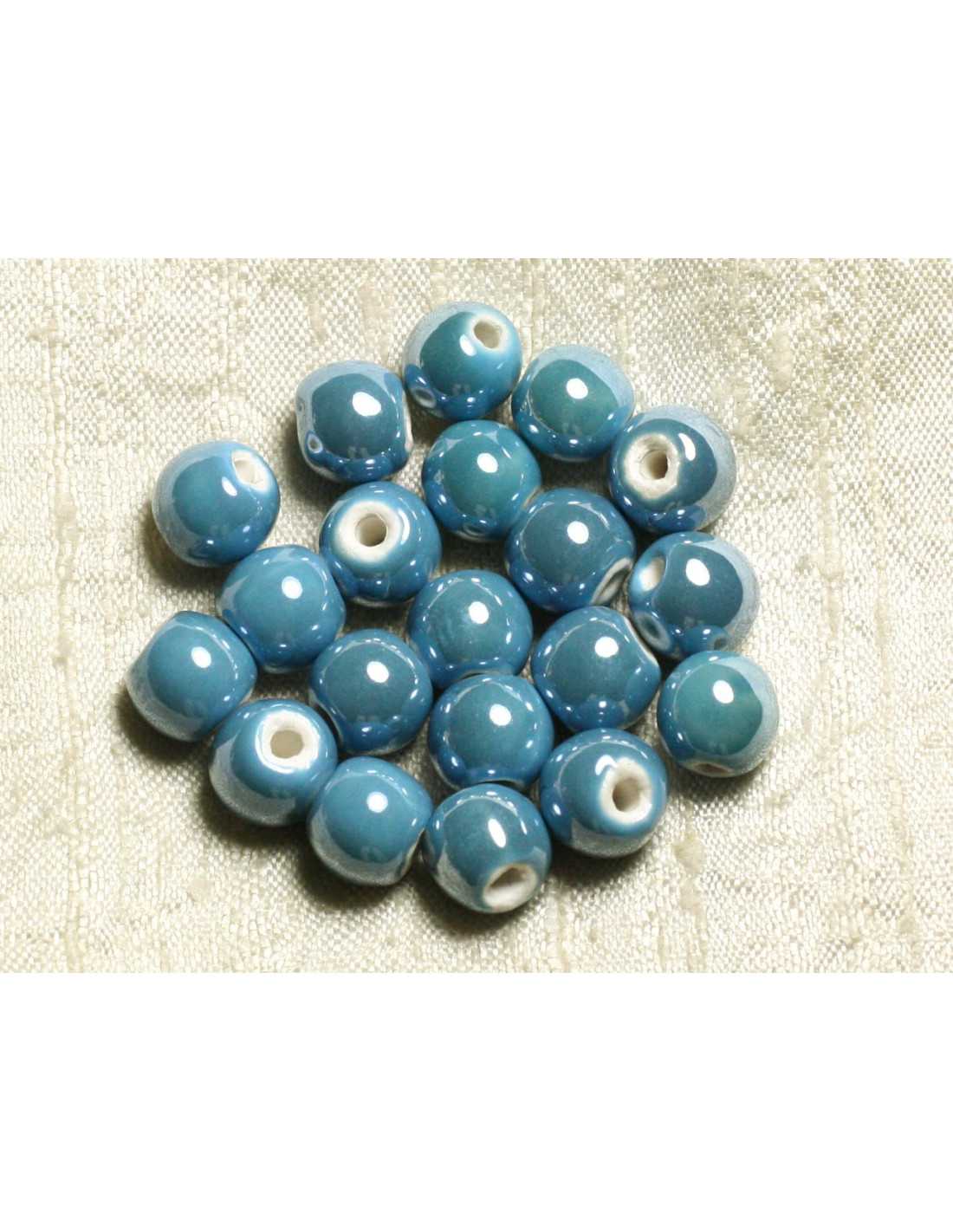 10pc - Türkisblau Keramik Porzellan Perlen Kugeln 10mm