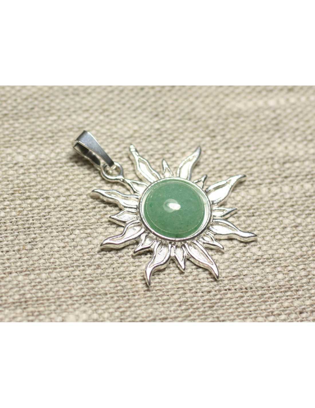 Anhänger Silber 925 und Stein - Sonne 28mm - Aventurin grün rund 10mm