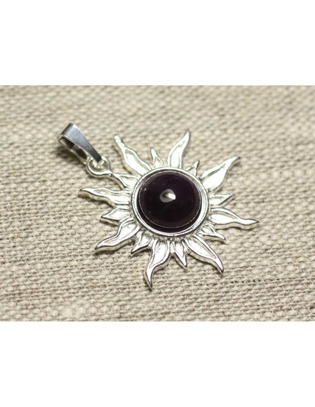 Anhänger Silber 925 und Stein - Sonne 28mm - Amethyst rund 10mm