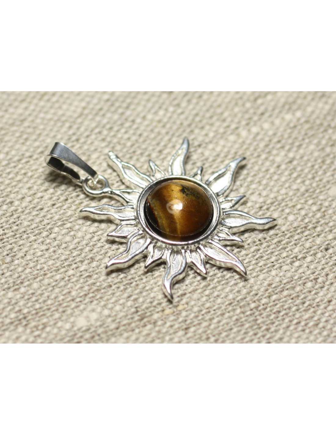 Anhänger Silber 925 und Stein - Sonne 28mm - Rund Tigerauge 10mm