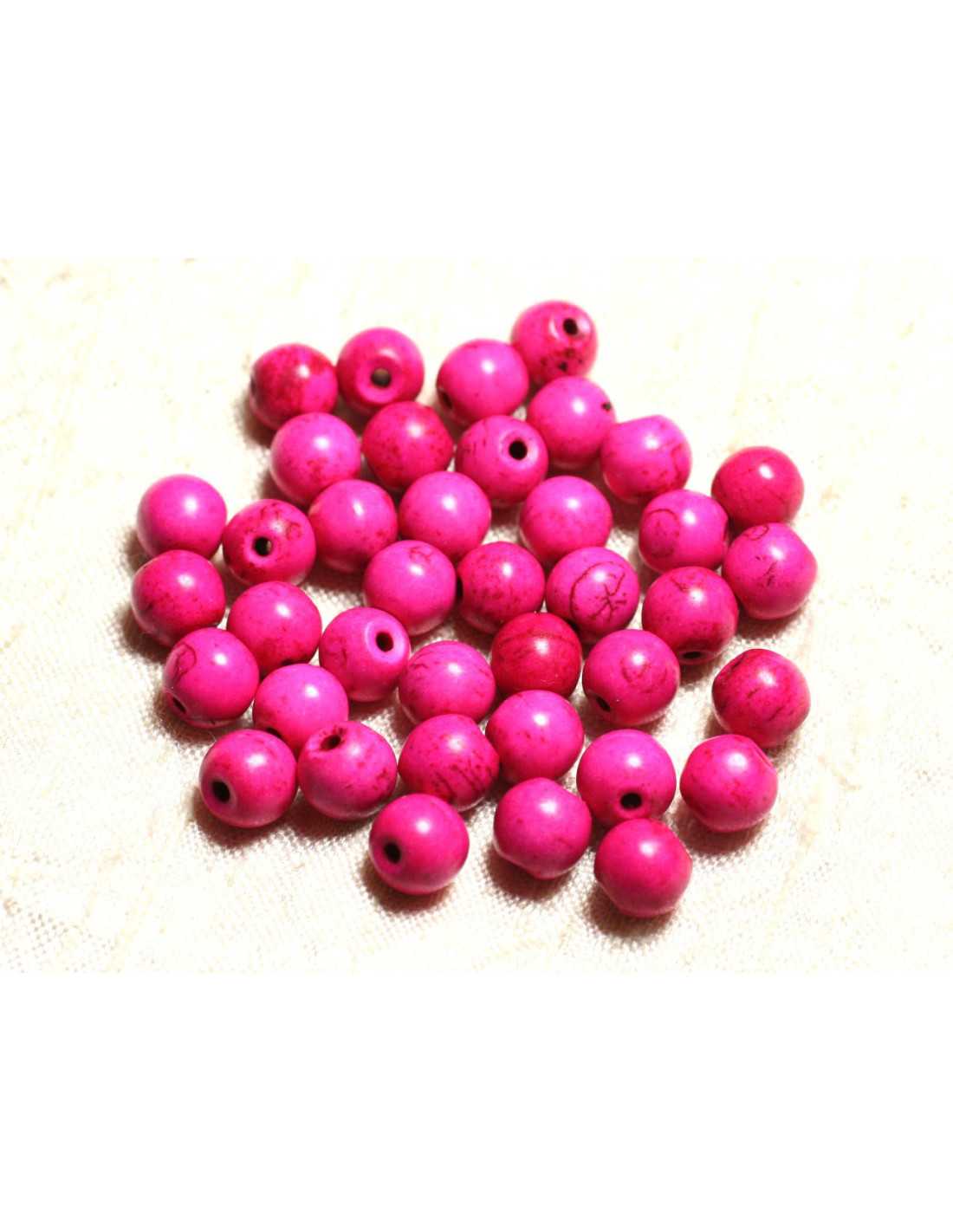 Gewinde 39 cm - Türkisfarbene Steinperlen Rekonstituierte Synthese 8 mm Kugeln Kunststein Farbe Fluo Pink Kugelform, rund Abmessungen ca. 8 mm Bohrgröße ca. 1 mm Verkauft mit 39 cm Draht Ungefähr 48 Perlen pro Draht