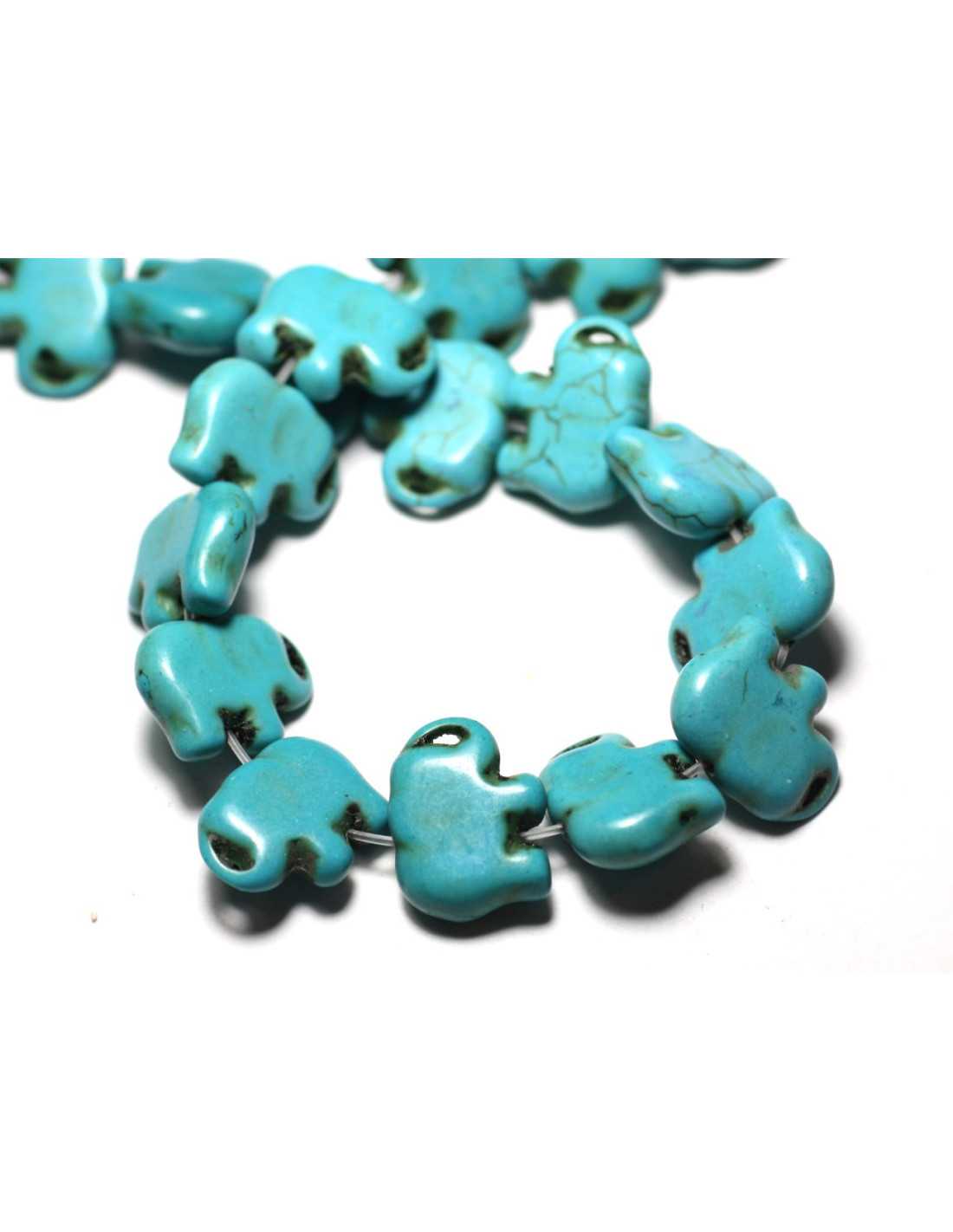Gewinde 39 cm - Synthetische türkisfarbene Steinperlen Elefant 19 mm Türkissynthese rekonstituierte Farbe Türkisblau Elefantenform Abmessungen Länge 19 mm x Breite 14 mm x Dicke 5 mm ca. Bohren in der Breite Abmessung ca. 1 mm Verkauft durch Strang von 39 cm Ca. 27 Perlen pro Strang