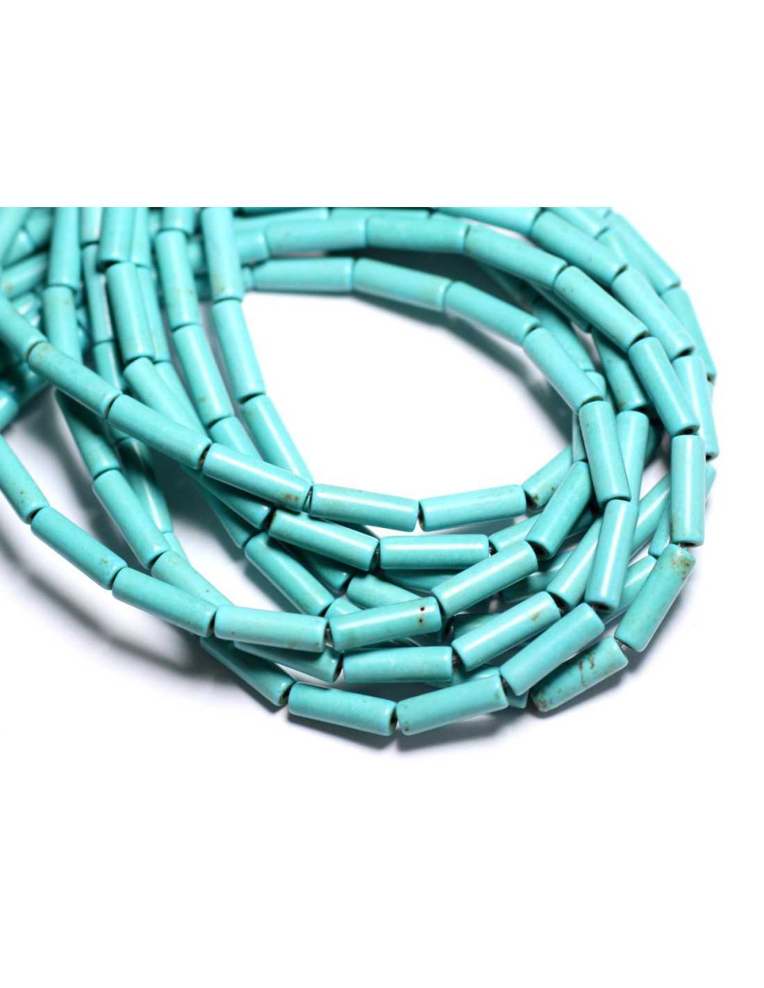 Gewinde 39 cm - Türkisfarbene Steinperlen Rekonstituierte Syntheseröhrchen 13 mm Kunststein Farbe Türkisblau Form Rohre in der Länge gebohrt Abmessungen Länge 13 mm x Breite 4 mm ungefähr Bohrmaß 1 mm ungefähr Verkauft mit einem Gewinde von 39 cm Ungefähr 29 Perlen pro Strang