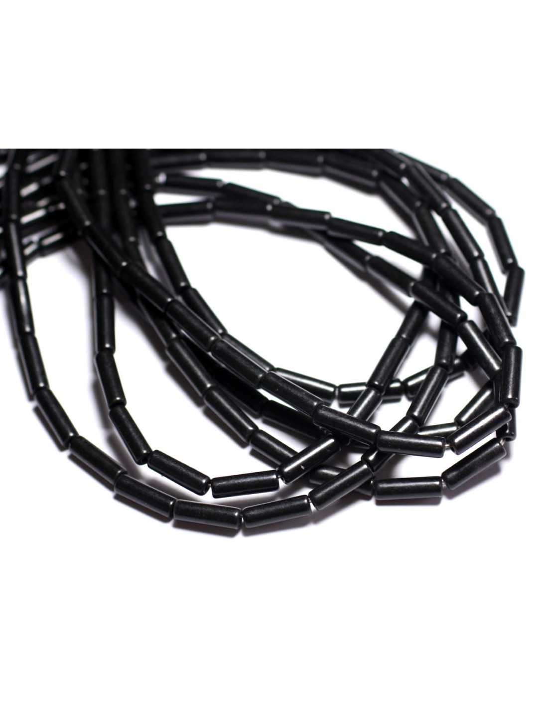 Gewinde 39 cm - Türkisfarbene Steinperlen Rekonstituierte Syntheseröhrchen 13 mm Synthetikstein Farbe Schwarz Form Rohre in der Länge gebohrt Abmessungen Länge 13 mm x Breite 4 mm ungefähr Bohrmaß 1 mm ungefähr Verkauft mit Draht von 39 cm Ungefähr 29 Perlen pro Draht