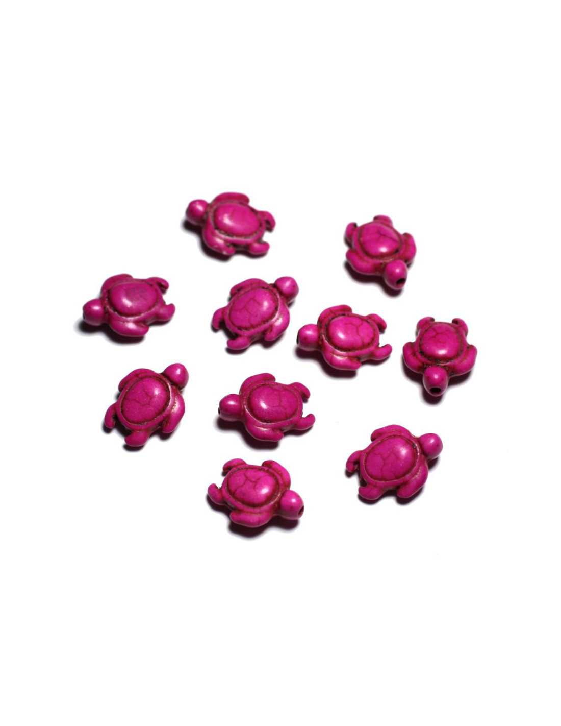 homemadeGewinde ca. 39cm 22pc - Synthetische türkisfarbene Steinperlen - Schildkröten 19x15mm Lila Pink Fuchsia