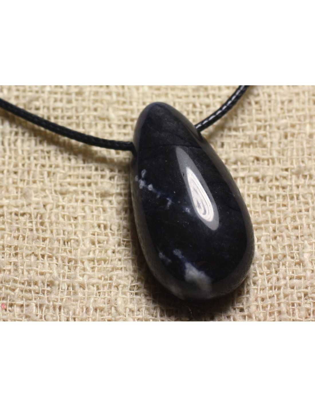 Sodalith Stein Anhänger Halskette Natürlicher Halbedelstein Farbe Weiß, Blau, Schwarz, Silber Reflexe Tropfenform Abmessungen 40 x 20 x 14 mm Bohren der Spitze von links nach rechts 3 mm Gewachste Baumwollschnur Farbe Ihrer Wahl Einstellbare Größe mit Verschluss praktisches und solides gleiten