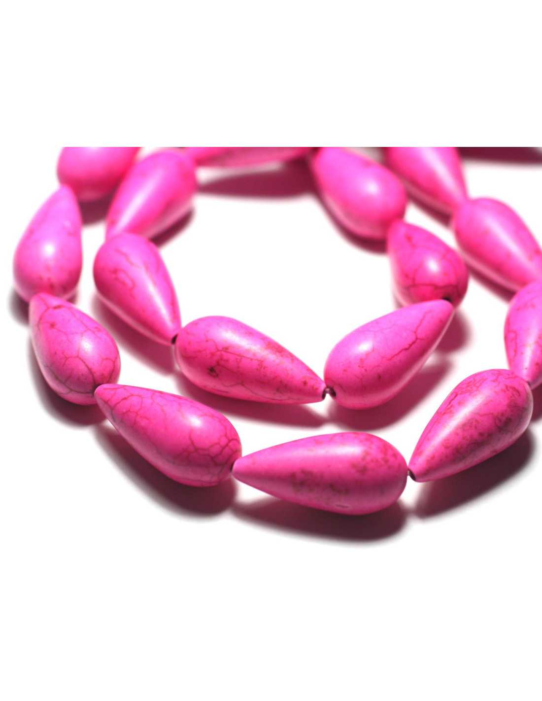 Gewinde 39 cm - Türkisfarbene Steinperlen Rekonstituierte Synthesetropfen 25 x 11 mm Kunststein Farbe Neonrosa Tropfenform in der Länge gebohrt Abmessungen Länge 25 mm x Breite 11 mm ca. Bohrabmessung ca. 1 mm ca. Verkauft mit Draht von 39 cm Ca.