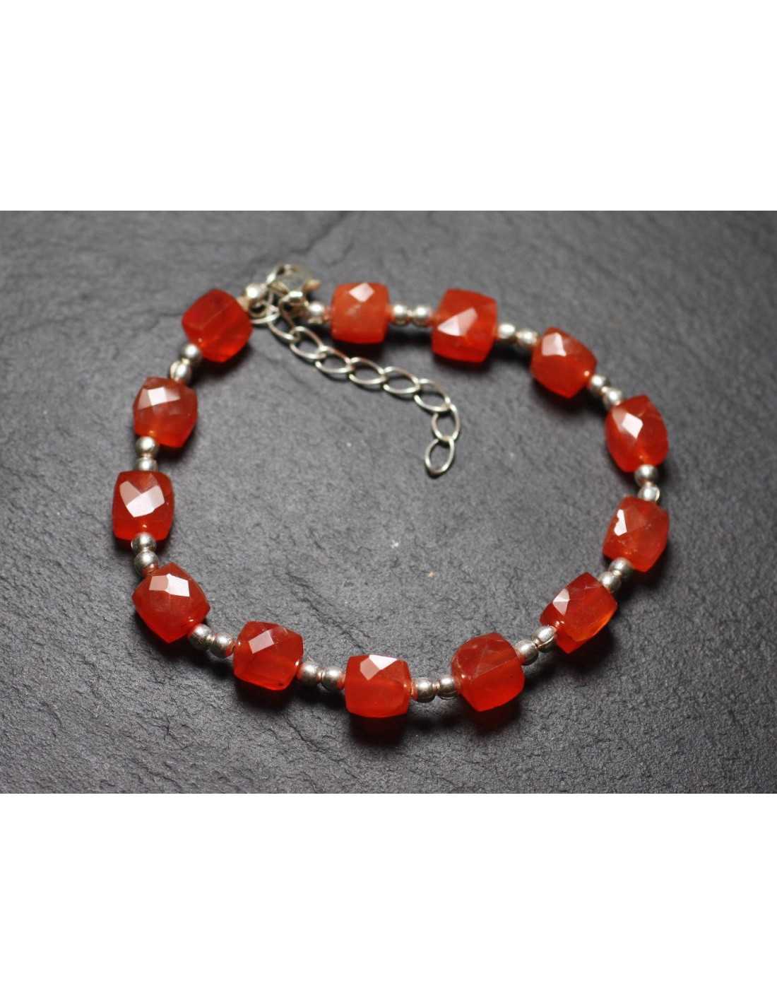 Armband Silber 925 und Stein - Karneol facettierte Würfel 5-6mm