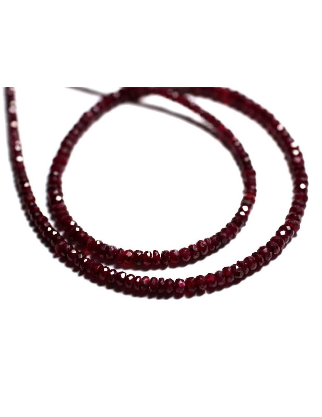 Perles de Pierre Rubis Rondelles Facettées Pierre précieuse naturelle Couleur rouge rose Forme Rondelles Facettées dégradées Dimensions 2-4mm environ Dimension perçage 0.3mm environ Vendues par fil de 205 perles environ