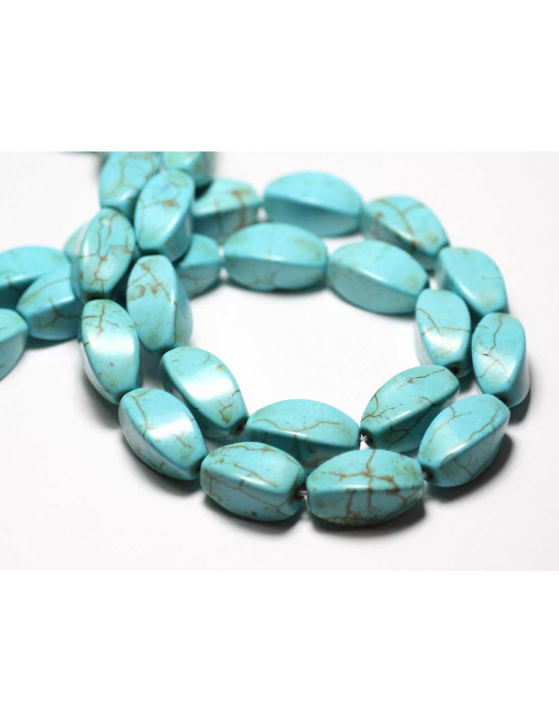 Hilo 39cm aprox 19pc - Cuentas de piedra turquesa sintética Twist Olives 20mm Azul turquesa