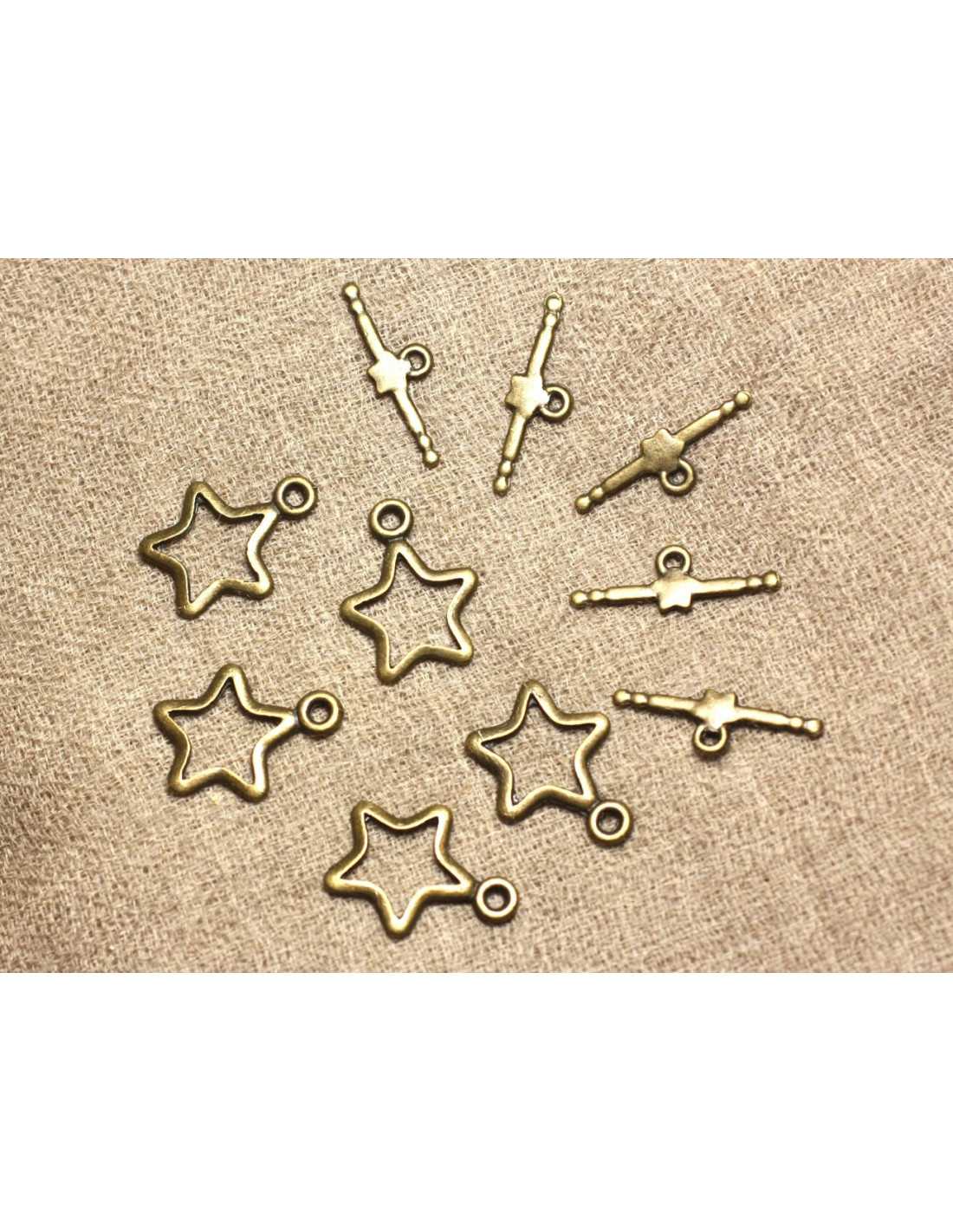50pc - Cierres Toogle T Star Metal Bronce Estrella 22x16mm