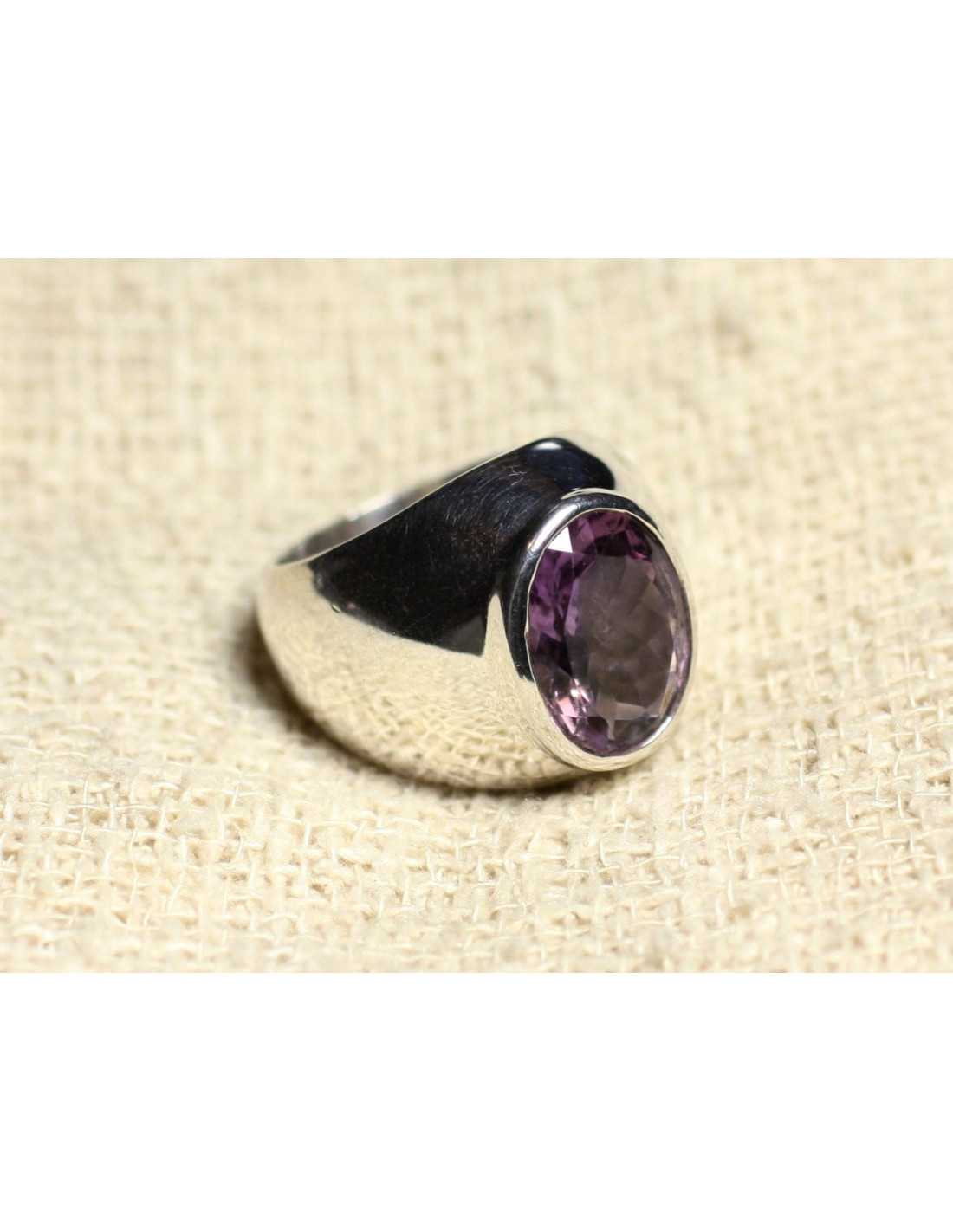n116 - Anillo de piedra y plata de ley 925 - Amatista facetada Ovalada 14x10mm