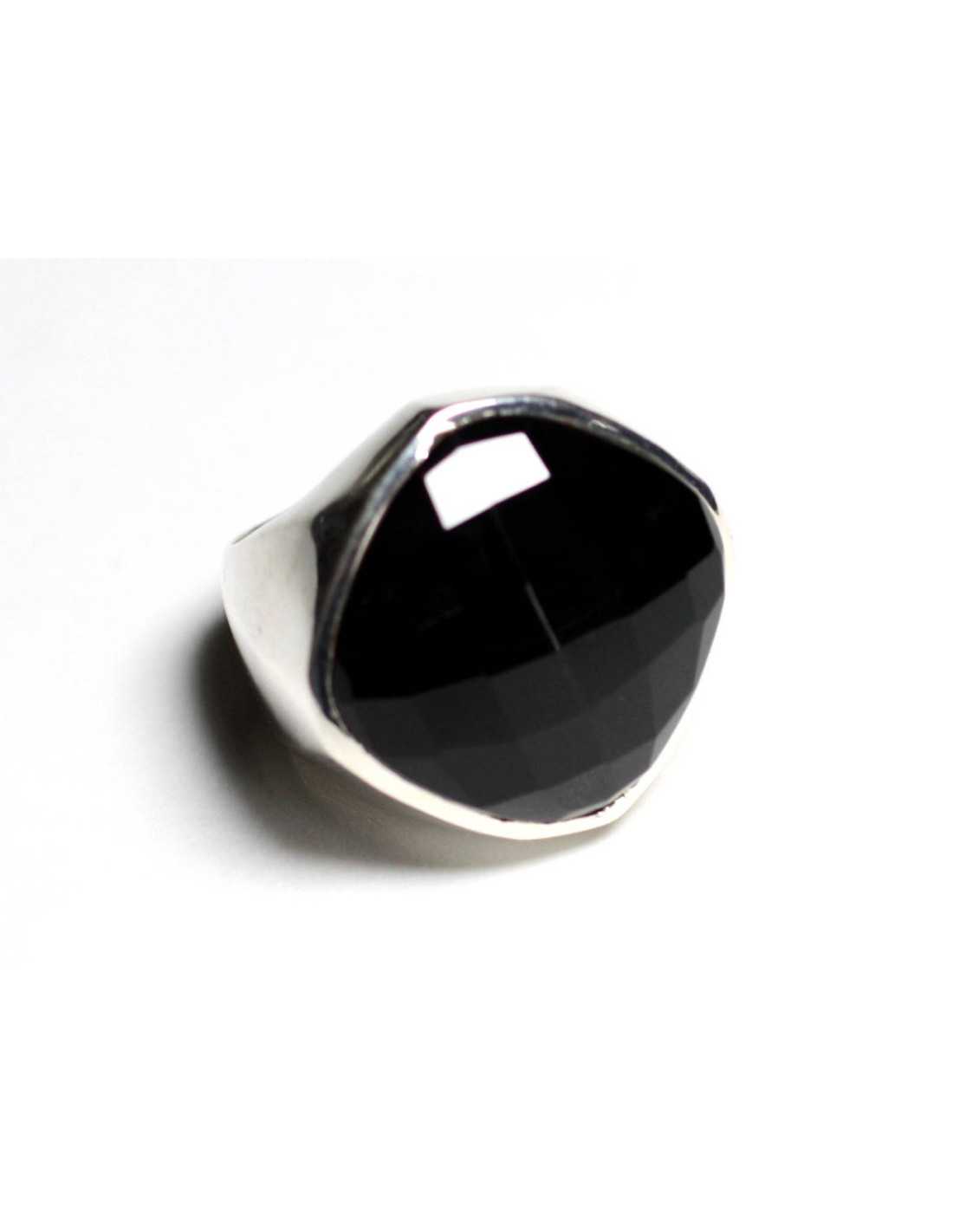 N223 - Anillo de Plata de Ley 925 y Piedra - Ónix Losange Facetado 23mm