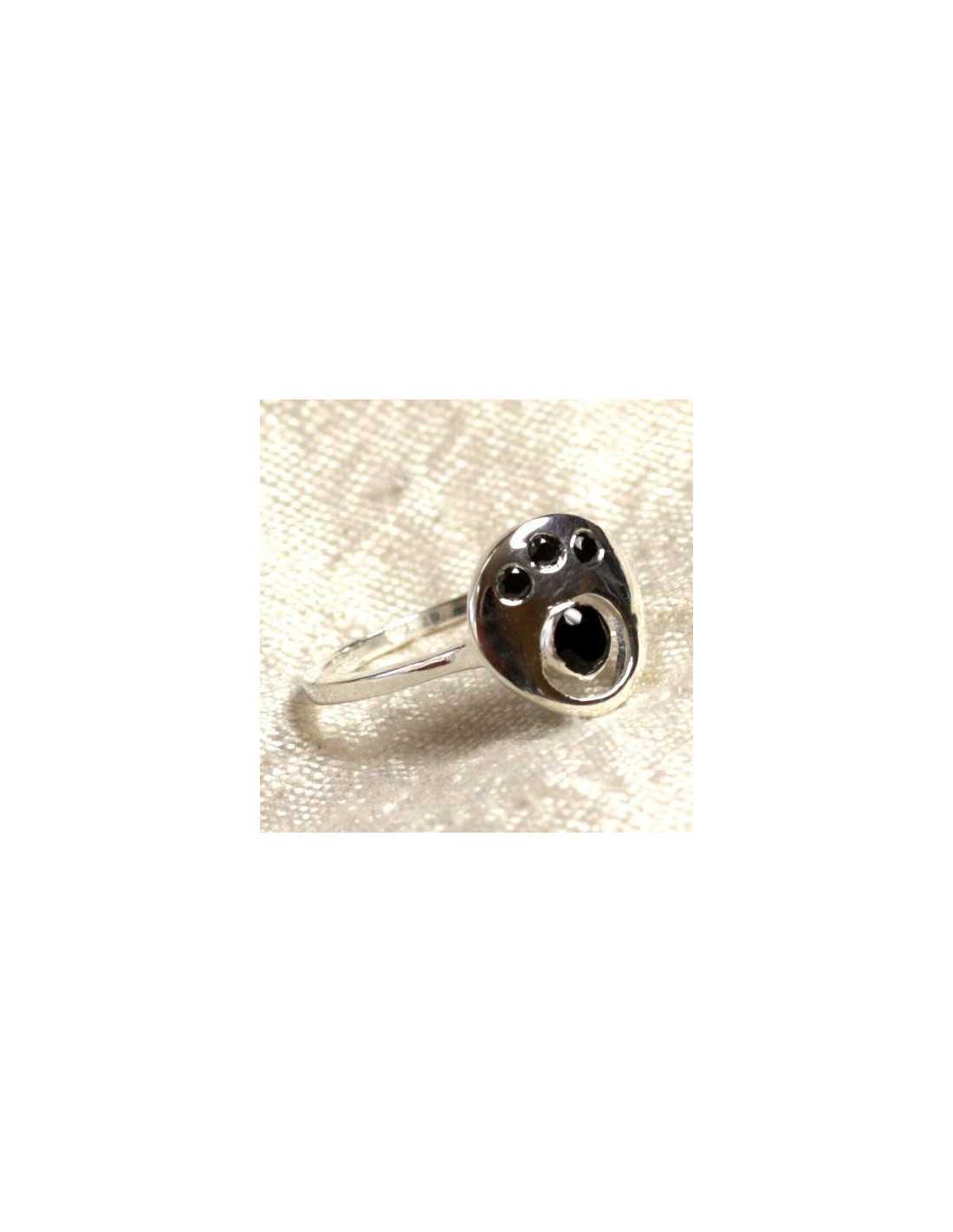 N226 - Anillo Plata 925 y Piedra - Ónix Negro Facetado Redondo 2-4mm
