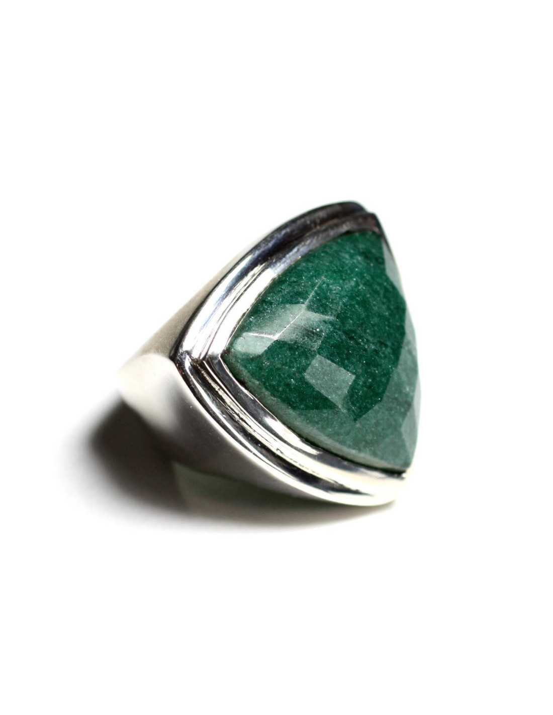Anillo Plata 925 y piedra semipreciosa de aventurina verde Piedra semipreciosa natural Color verde oscuro, transparente Forma de triángulo facetado Dimensiones 21 x 22 x 5 mm Plata 925/1000 garantizada Conjunto de piedras Ancho del anillo 8-15 mm Altura del anillo 10 mm Tamaño del anillo Dedo: 53 Otros tamaños posibles
