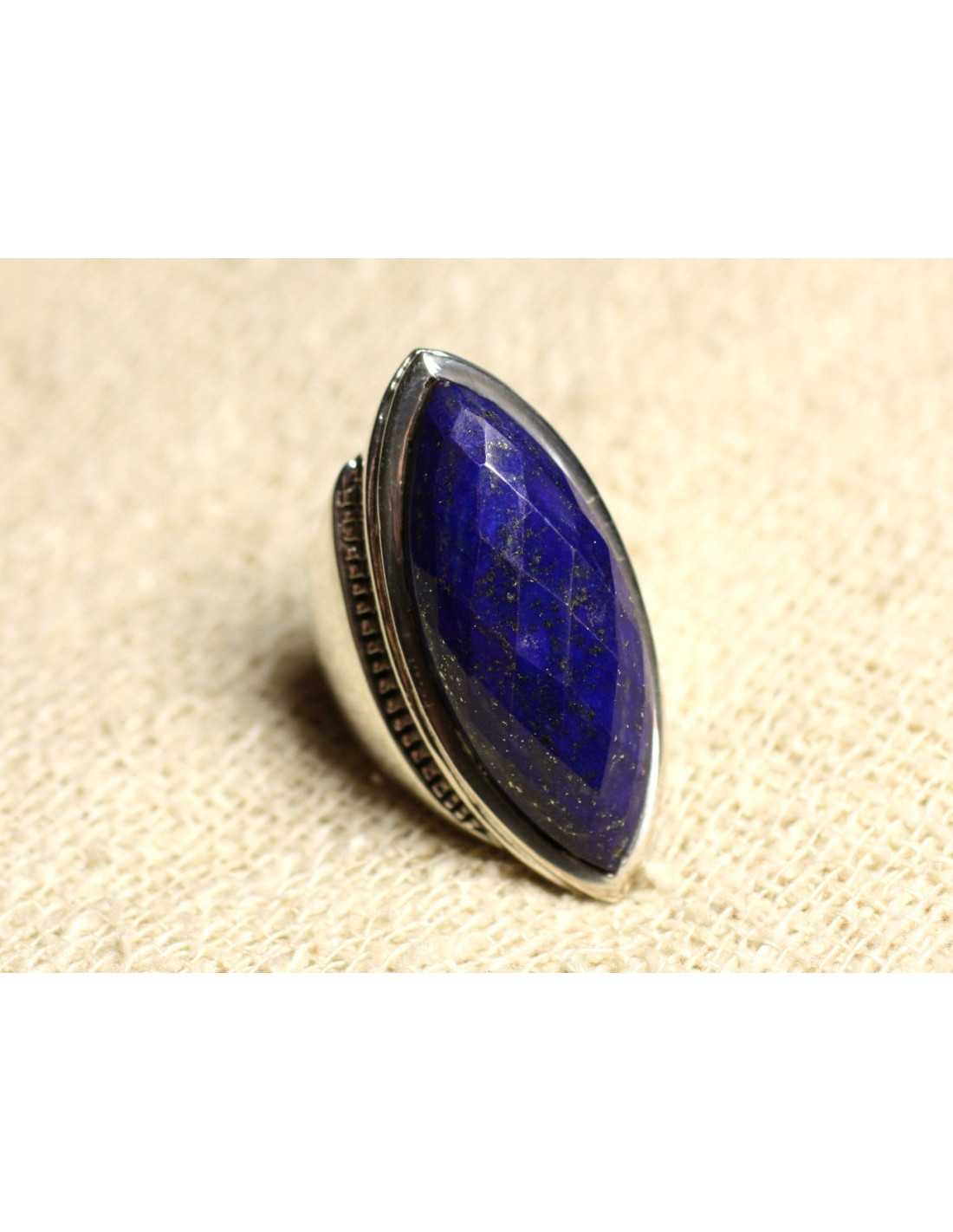 N348 - Anillo Marquesa Facetado Lapislázuli Plata De Ley 925 34x14mm