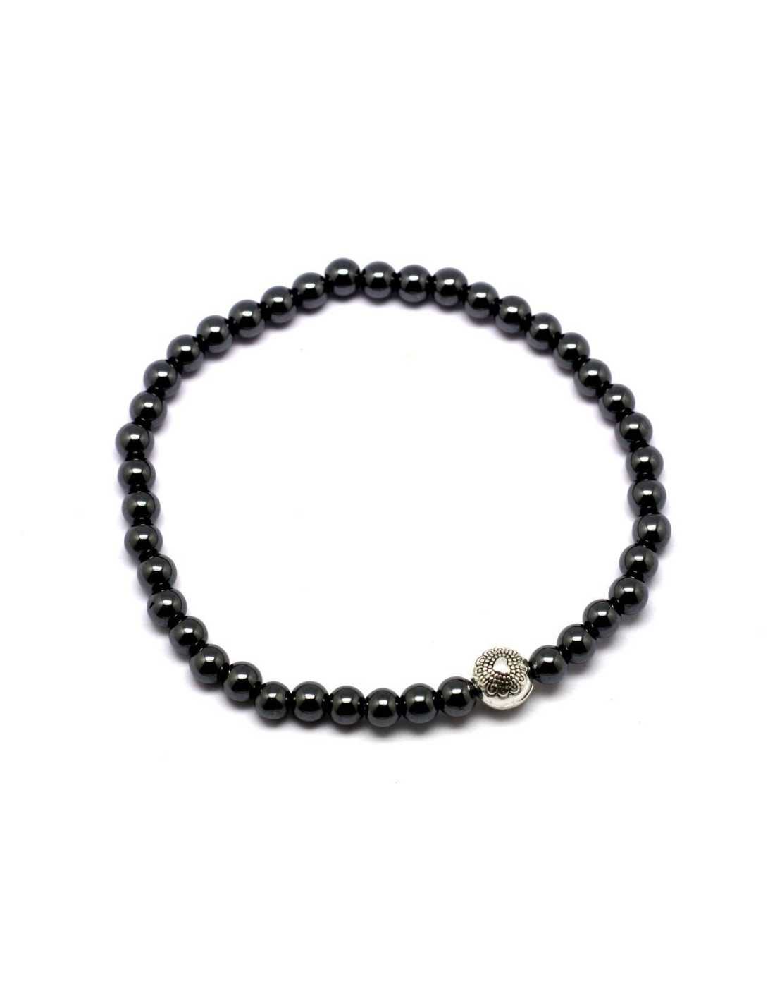 Pulsera de perlas de plata y piedras semipreciosas de hematita de 4 mm