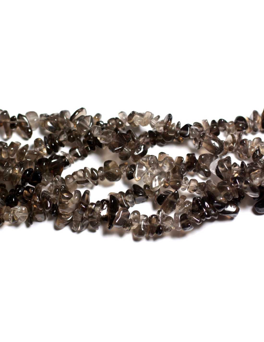 Fil 89cm - Perles de Pierre Quartz Fumé Pierre semi précieuse naturelle Couleur marron, taupe, transparent Forme Rocailles Chips Dimensions 5-10mm environ Dimension perçage 1mm environ Vendu par fil de 89cm Environ 310 perles par fil