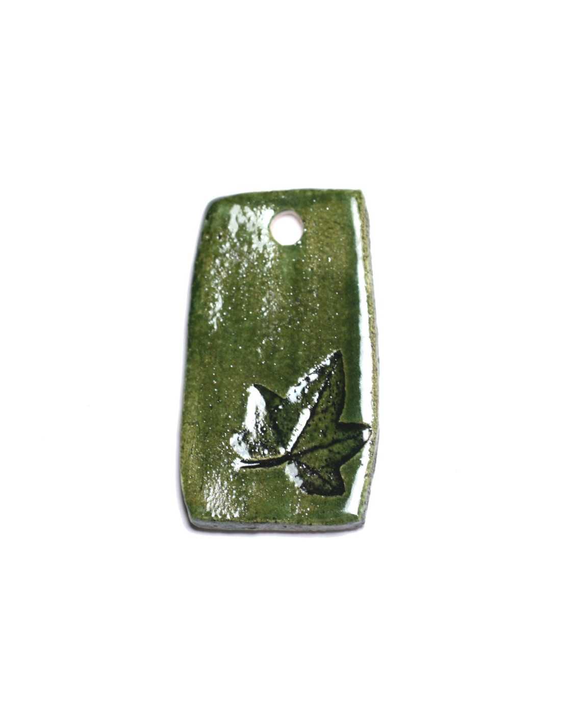 N32 - Colgante Porcelánico Cerámica Nature Prints Hoja 47mm Verde Oliva - 8741140004153