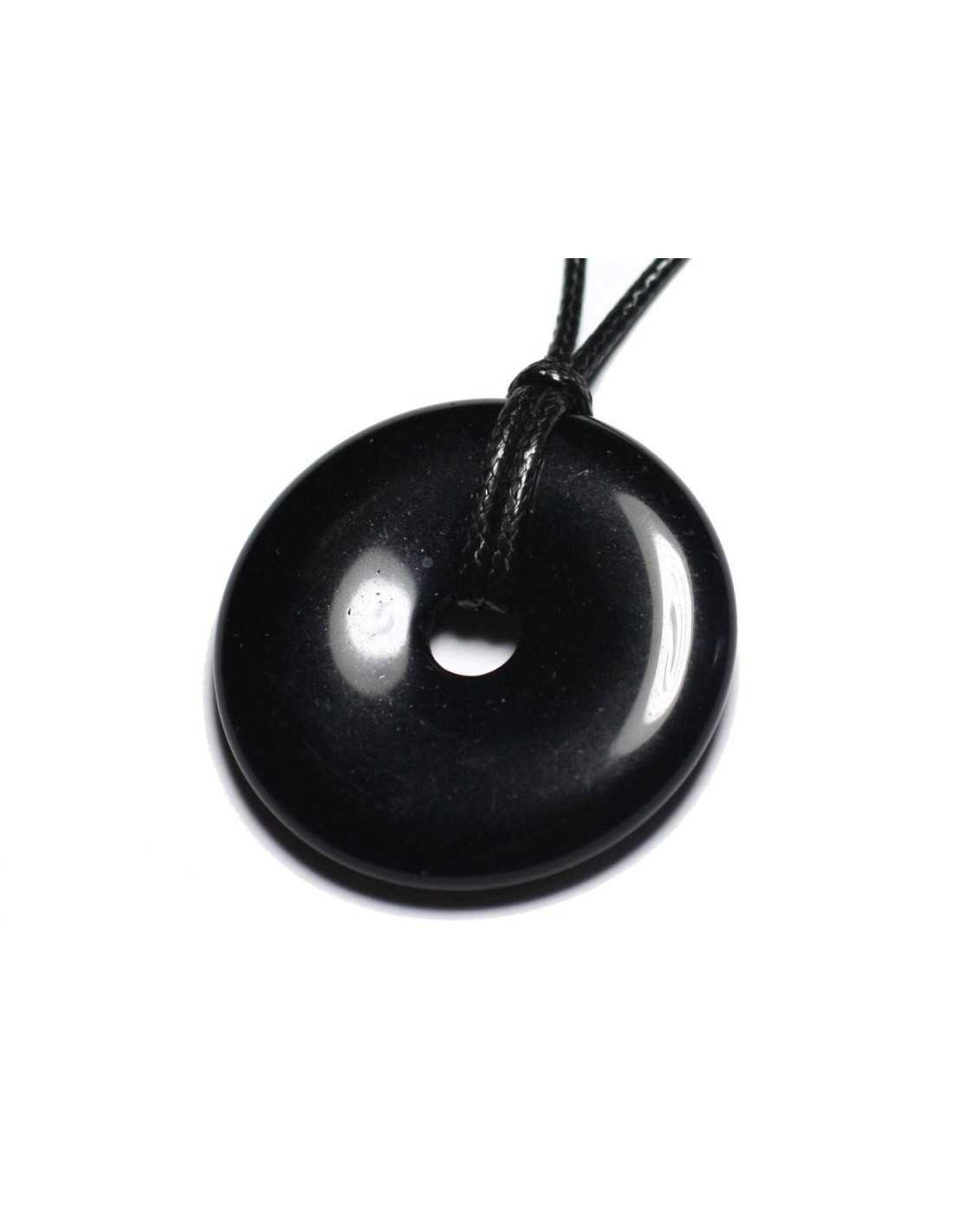 Collier Pendentif en Pierre - Obsidienne Noire Donut Pi 40mm
