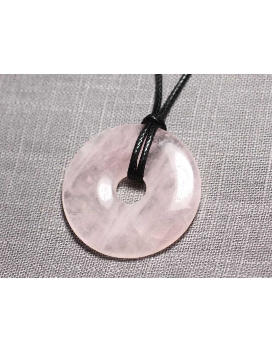 Collier Pendentif en Pierre - Quartz Rose Donut Pi 40mm