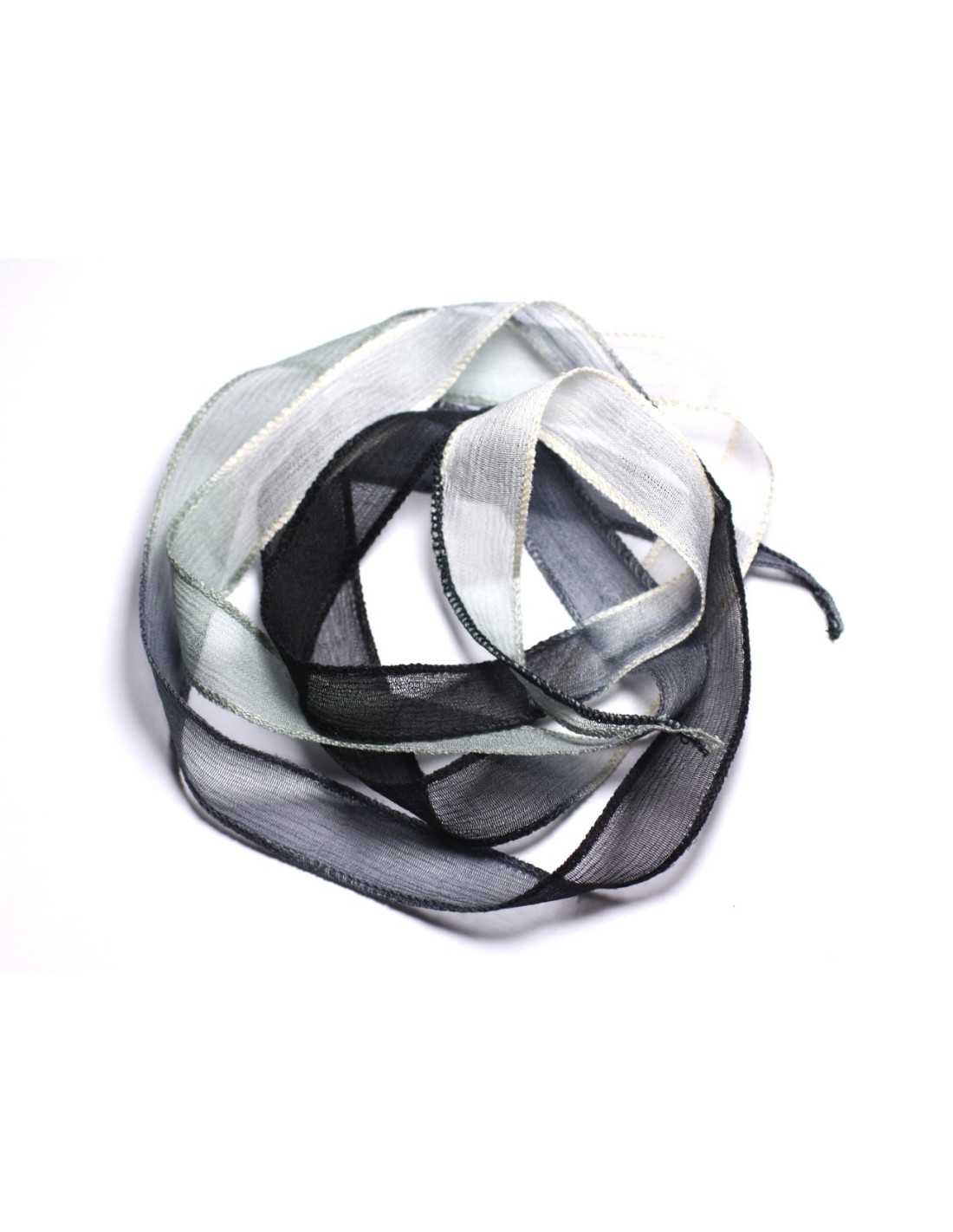 Collar cinta de seda teñido a mano 130x1.8cm Blanco Gris Negro (SILK104) - 8741140003057