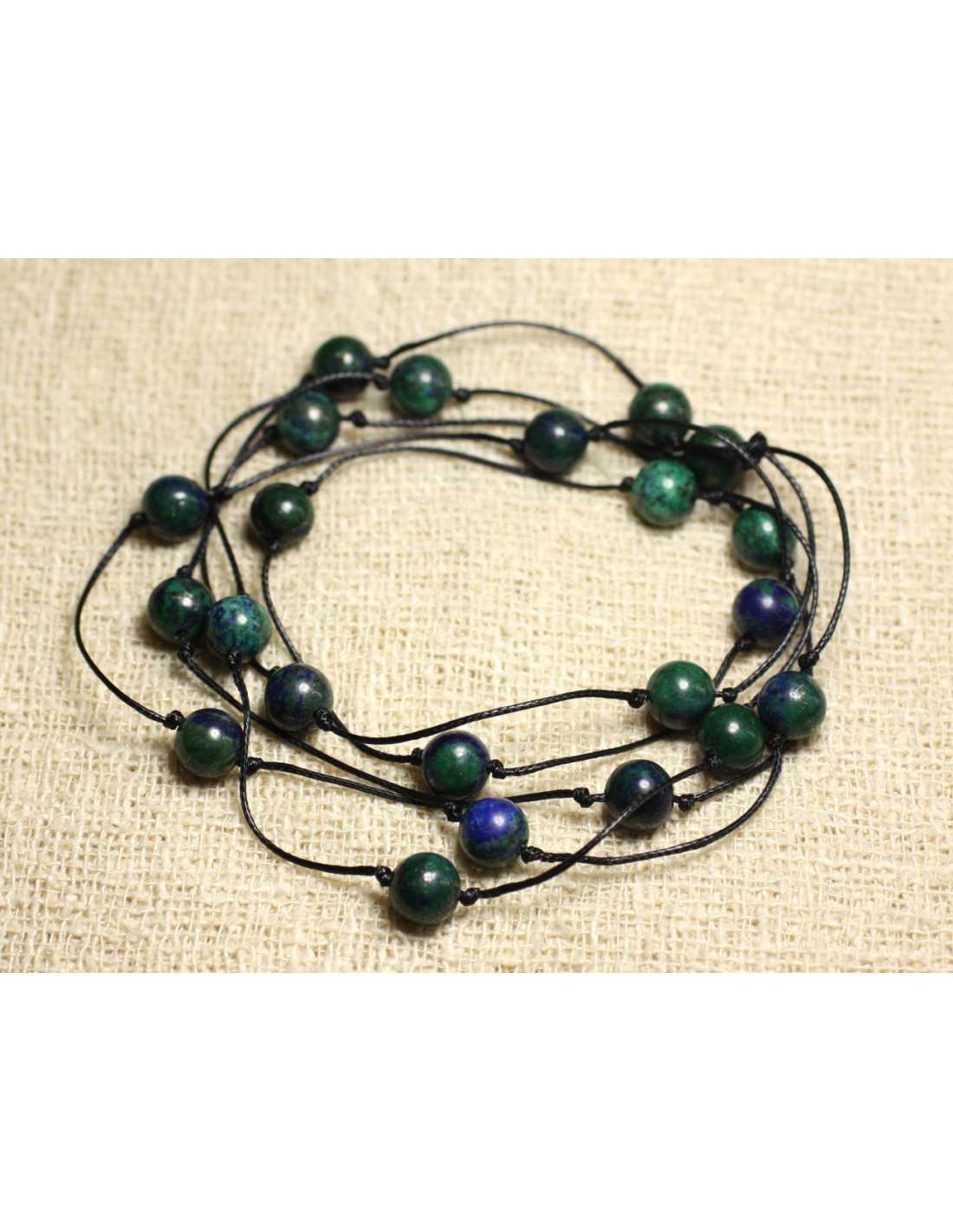 Collar largo Algodón y piedra semipreciosa Crisocola Piedra semipreciosa natural Color azul verde Cuentas redondas 8mm Collar hecho en algodón encerado negro (otros colores posibles) Largo 110cm aproximadamente Se puede usar como un collar largo, como un collar de dos hileras, como una pulsera de varias hileras. ¡Personalización posible con piedras y colores de su elección! ***** ***** ***** ***** Virtudes de las piedras: Crisocola: amistad, comunicación, energía, bienestar, equilibrio, autoconfianza