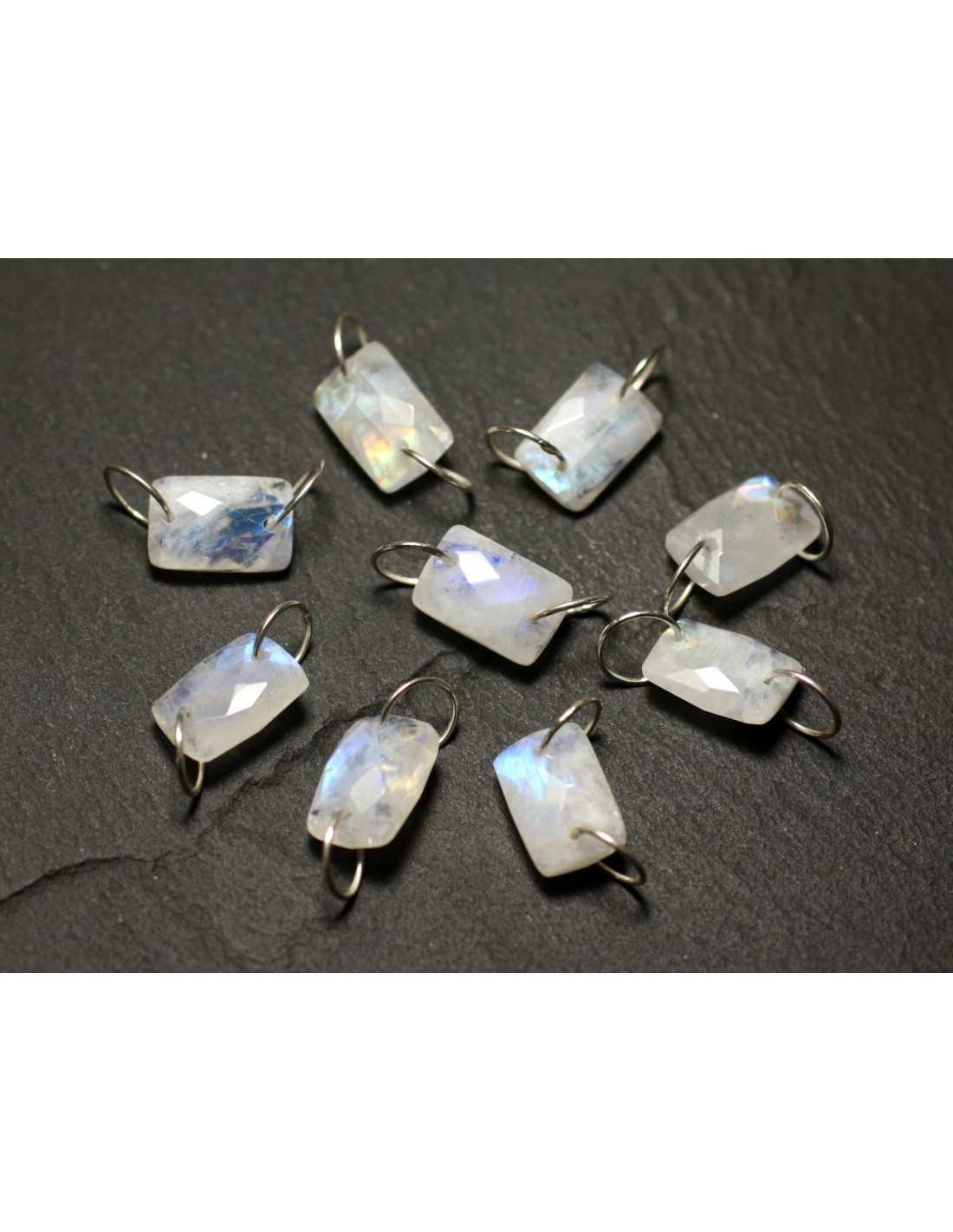 1pc - Cuentas de conector de piedra y plata 925 - Rectángulo facetado de piedra lunar arcoíris 12x8mm