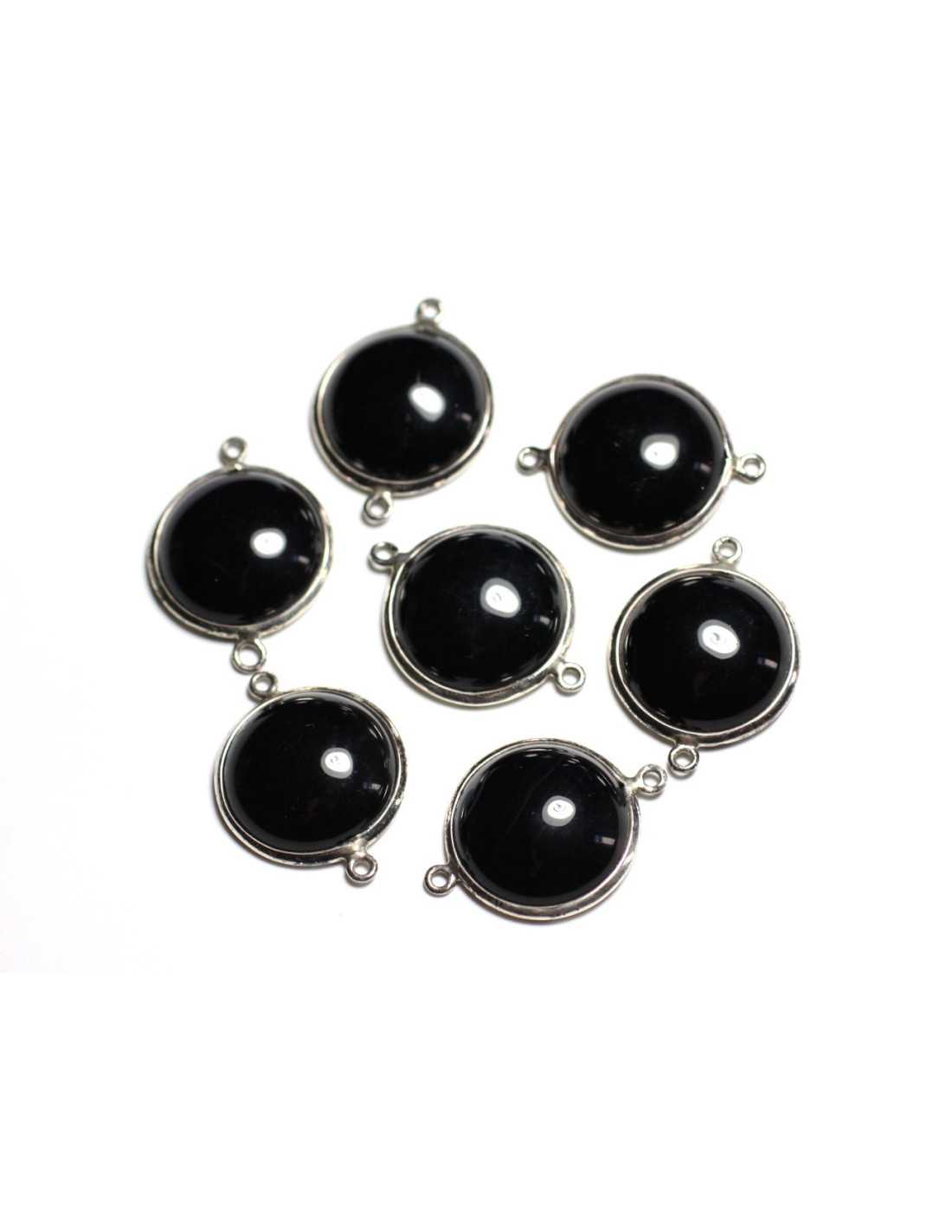 1pc - Conector de plata 925 y piedra - Ágata negra redonda 20 mm - 4558550082398