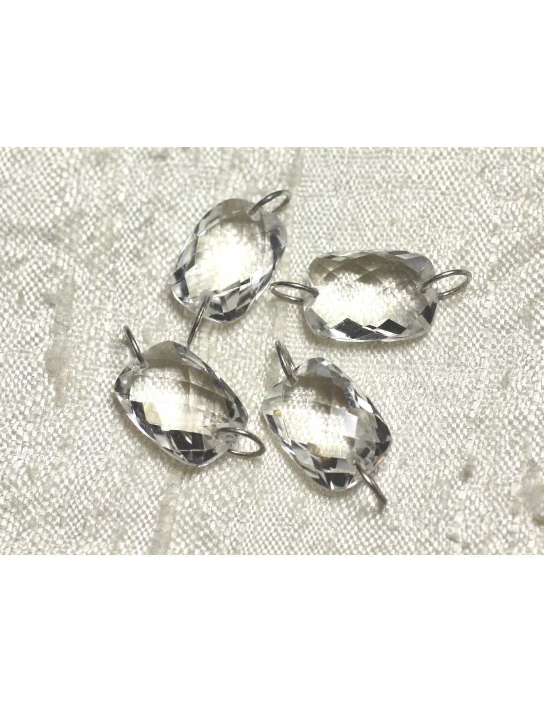 1pc - Componente de piedra y plata 925 - Rectángulo facetado de cuarzo de cristal de roca 14x10mm 4558550001535