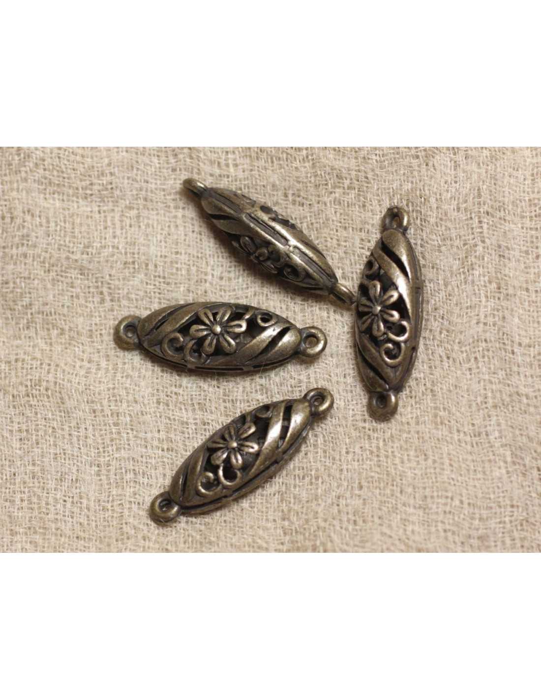 2 piezas - Conectores metálicos de bronce con cuentas y flores de filigrana - 30 mm 4558550032720