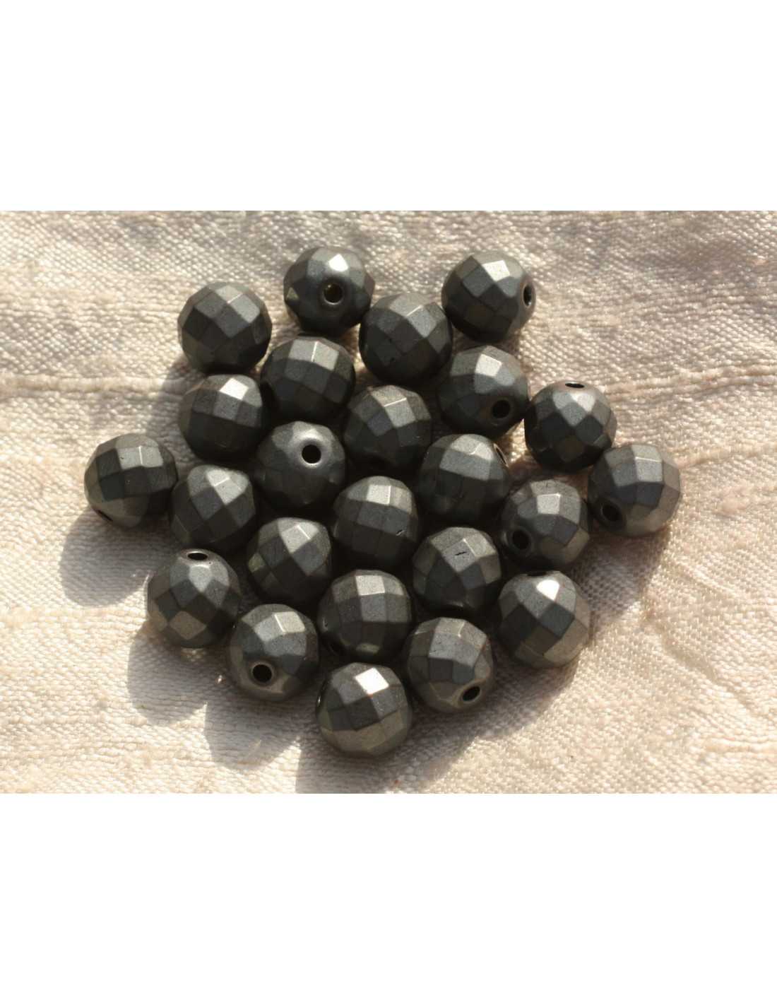 10pc - Cuentas de piedra - Bolas facetadas de hematites 6mm Gris plateado mate arenado esmerilado - 8741140014763