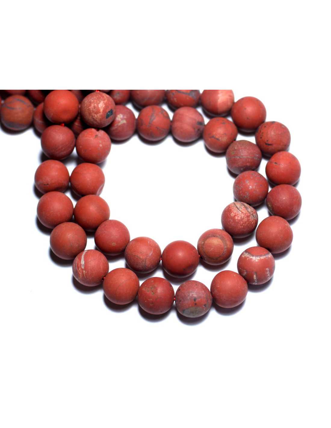 Hilo 39cm 37pc aprox - Cuentas de Piedra - Bolas de Jaspe Rojo Mate Esmerilado de 10mm