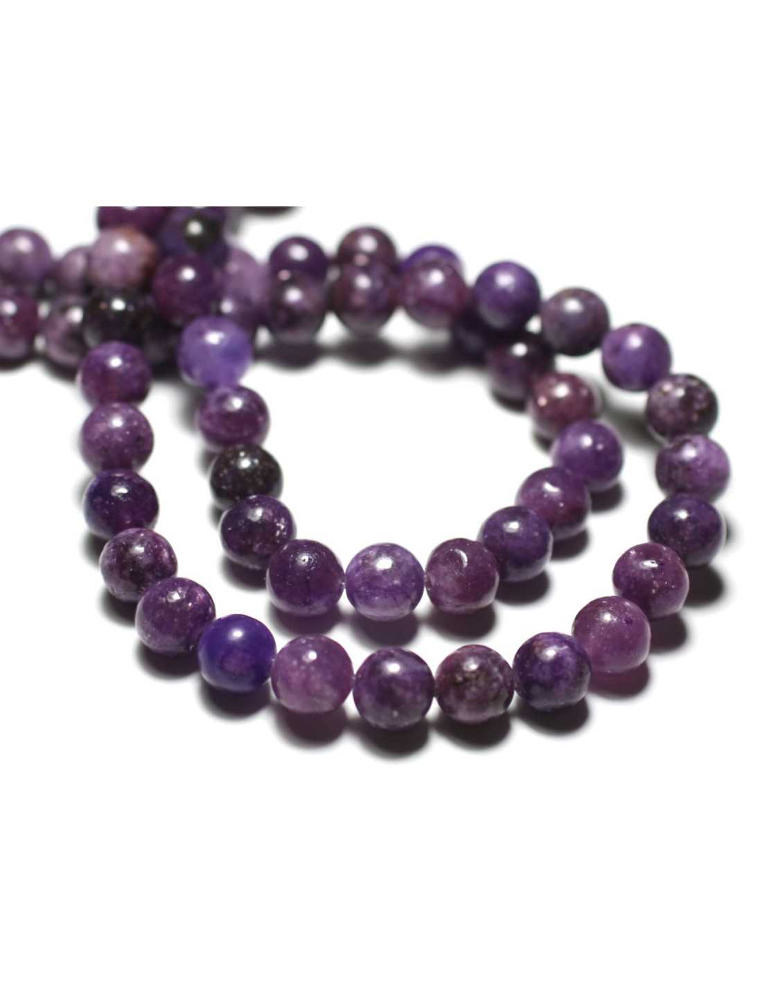 Hilo 39cm aprox 47pc - Cuentas de Piedra - Bolas de Lepidolita Moradas 8mm