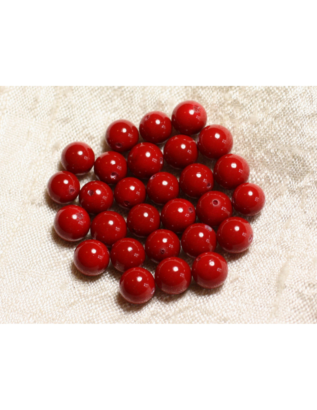 Hilo 39cm aprox 63pc - Cuentas de nácar Bolas de 6 mm Rojo cereza brillante