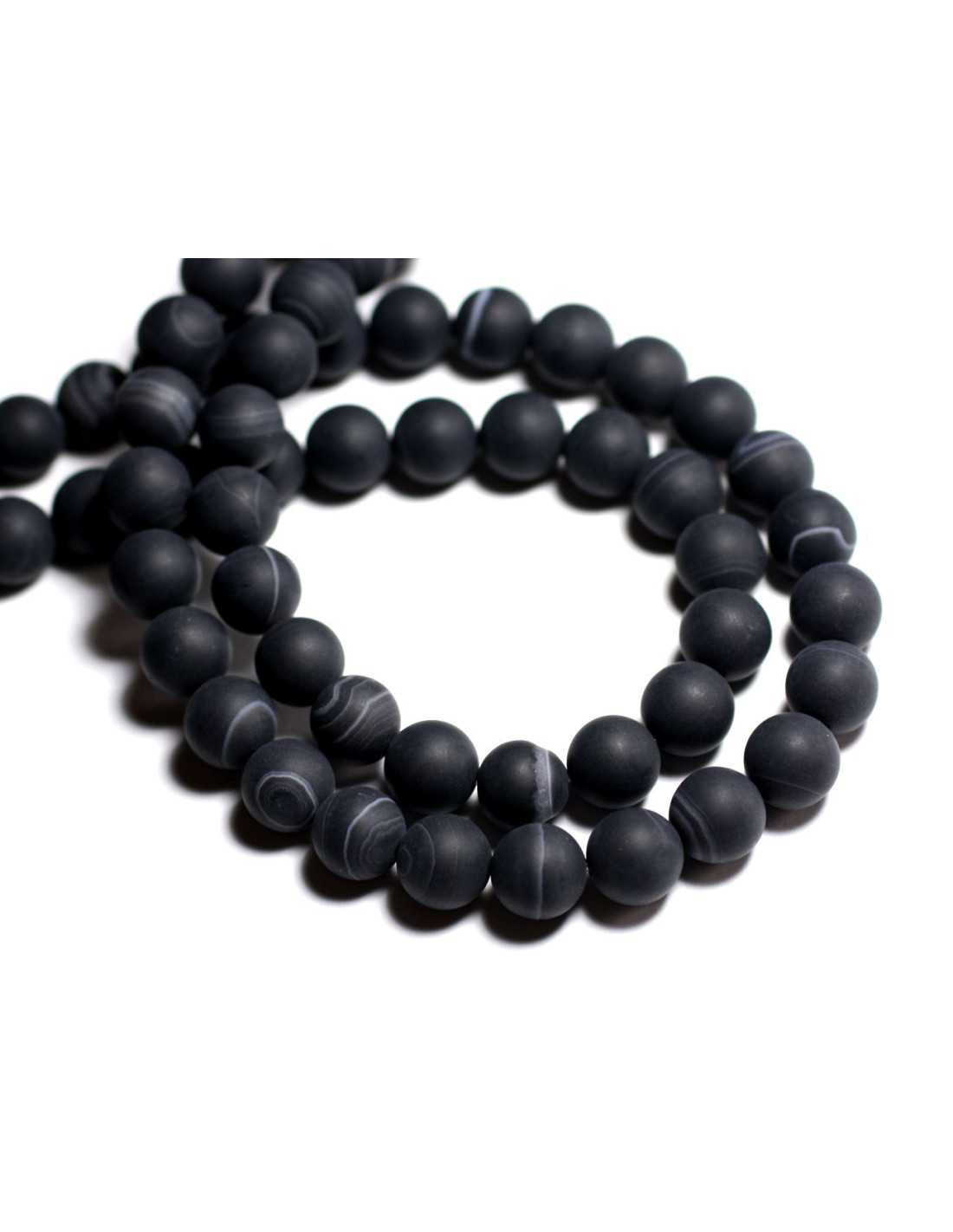 6pc - Cuentas de piedra - Bolas de ágata negra mate de 10 mm