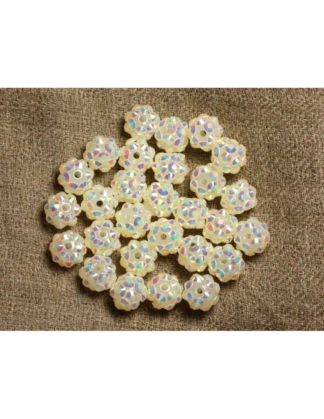 10pc - Shamballas Beads Resin 10x8mm Transparente Crema Blanco y Multicolor