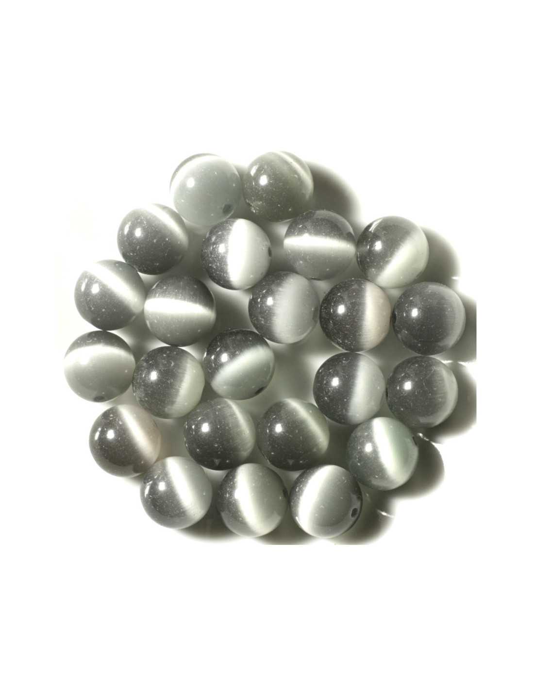 4pc - Perles en Verre Oeil de Chat Boules 12mm Gris Argenté
